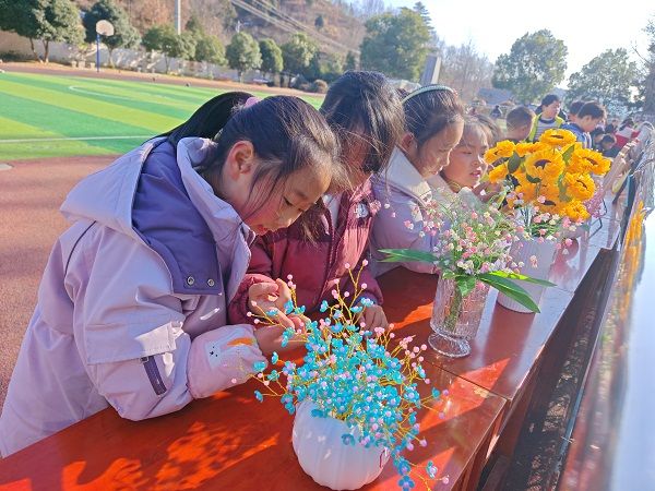 冬日暖阳下,丹江口市丁家营镇小学的操场上洋溢着艺术与活力的气息。1月6日,学校课后服务兴趣小组优秀作品展精彩启幕,手工艺品、剪纸、绘画、书法等百余件作品引得师生驻足欣赏,成为校园里一道亮丽的风景线。