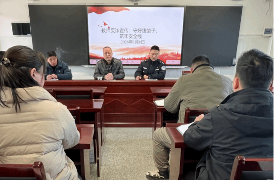 为全面提升全体教职工的安全防范意识和应急处置能力,有效保障个人及集体财产安全,2026年1月6日上午,石堰河初级中学特邀白鹤镇派出所民警主持开展了“反诈防盗”专题讲座。全体教职工及中心校相关领导参加了此次会议。