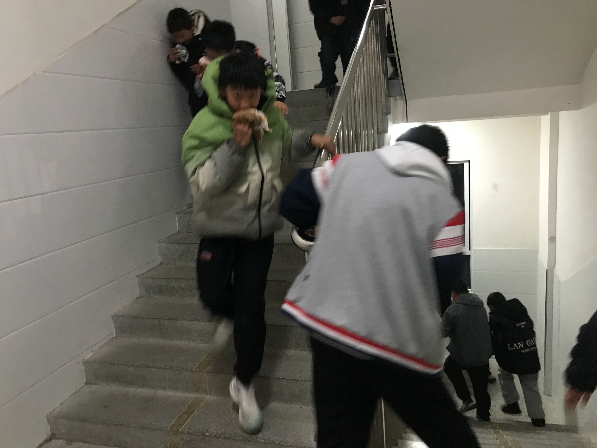 模拟火警警报声划破校园夜空,演练正式启动。总指挥一声令下,应急机制瞬间高速运转:报警组迅速联动、后勤组及时切断相关电源、值班教师如灯塔般坚守各楼层楼梯口与关键节点,引导学生以湿物掩口鼻、弯腰低姿,遵循“高层先撤、依次有序”原则快速撤离。整个过程中,学生们神情专注、动作规范,无推搡拥挤现象,展现出良好的应急素养与团队协作精神,迅速有序集结至指定安全区域,各班快速清点人数并逐级上报。