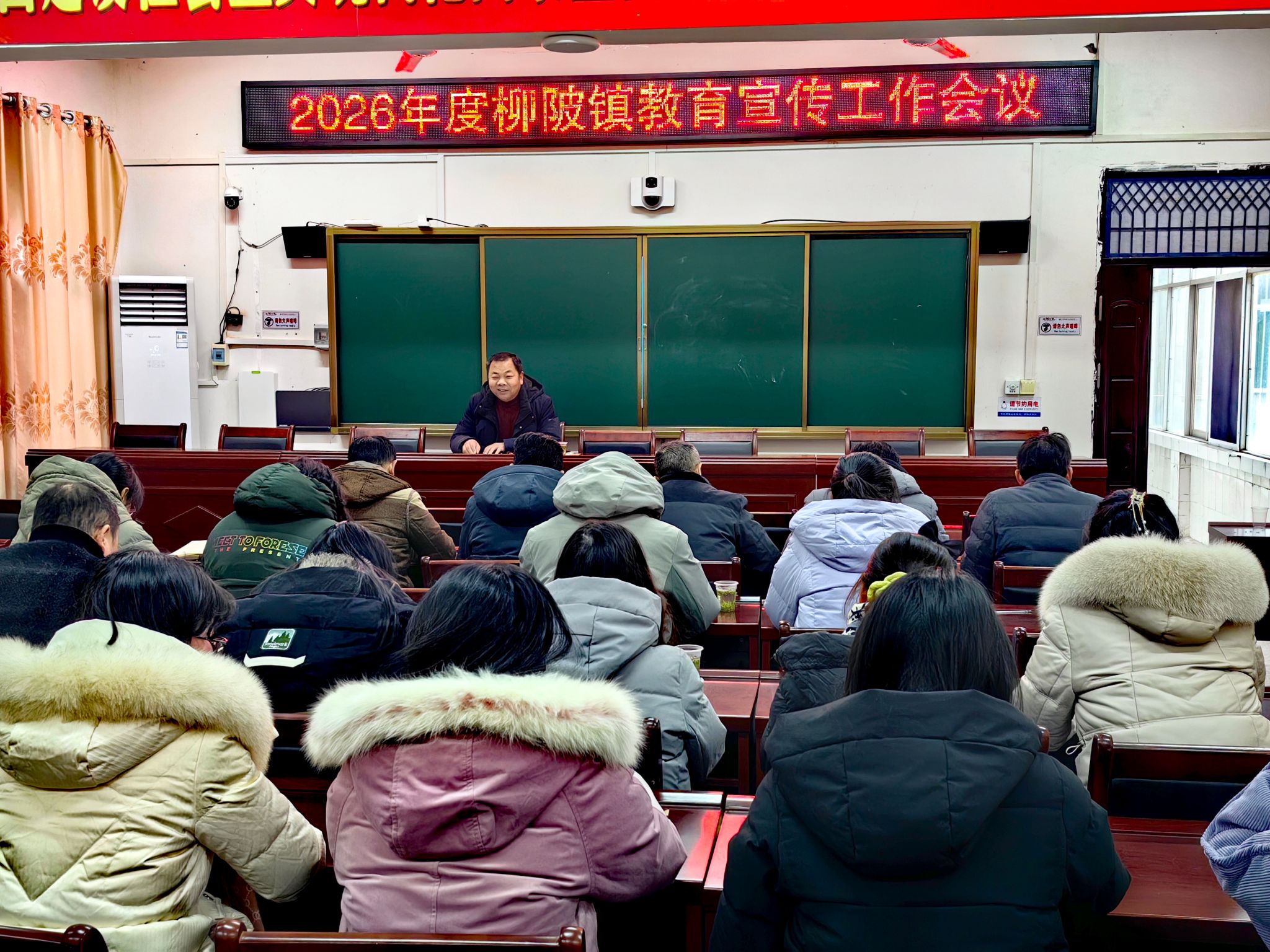 1月19日,郧阳区柳陂镇中心学校在柳陂中学会议室召开2026年度教育宣传工作会议,镇教育系统党总支书记刘刚君主持,辖区各中小学校分管宣传领导、通讯员共25人参加。会议聚焦“深化教育品牌建设、提升传播效能”,总结2025年成果,部署2026年任务,研讨热点议题。