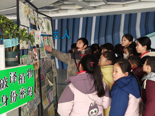 六年级的“植物‘身份密码’破译计划”展区充满了探索气息。同学们化身“植物小侦探”,通过采集校园内的各类植物标本,制作了详细的植物图鉴,标注了植物的名称、科属、生长习性、形态特征等信息。展区内还设置了植物叶片拓印、植物分类小游戏等互动环节,同学们热情地为参观者讲解植物的“身份密码”,分享自己在植物观察与研究过程中的收获,展现了严谨的科学探究精神。