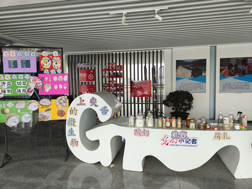 七年级的“舌尖上的微生物”展区成为本次博览会的一大亮点。同学们围绕微生物发酵原理,亲手制作了酸奶、泡菜、面包、果酒等各类美食,整齐地陈列在展区内,散发着独特的风味。展区内,同学们通过实验数据、图文介绍和现场讲解,详细阐述了微生物在发酵过程中的作用,分享了食材选择、发酵条件控制等关键步骤,还邀请参观者品尝自己的作品,让大家在味觉体验中感受微生物的神奇魅力,领略科学与美食的完美融合。