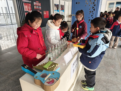 四年级展区开启了“耳朵的奇幻旅程”,带领大家探索听觉的奥秘。展区内设置了趣味实验体验区、听觉原理图文墙、自制简易听诊器展示台等板块。同学们通过现场演示声音的传播实验,讲解耳朵的生理结构与听觉形成机制,还分享了自己制作简易听诊器的过程与心得,让参观者在互动体验中深入了解声音的科学知识,感受听觉世界的奇妙。