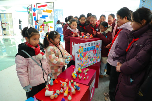 走进博览会现场,各年级展区精心布置、创意十足,每一处都承载着同学们的探究热情与实践成果。一年级的“可爱的不倒翁”展区充满童趣,一个个造型别致的不倒翁整齐陈列,有卡通形象、传统纹样等多种设计风格。同学们不仅亲手制作了不倒翁,还通过图文展板和现场演示,向参观者讲解不倒翁“重心越低越稳定”的科学原理,用稚嫩的语言诠释着对力学知识的初步认知,让现场充满了欢声笑语。