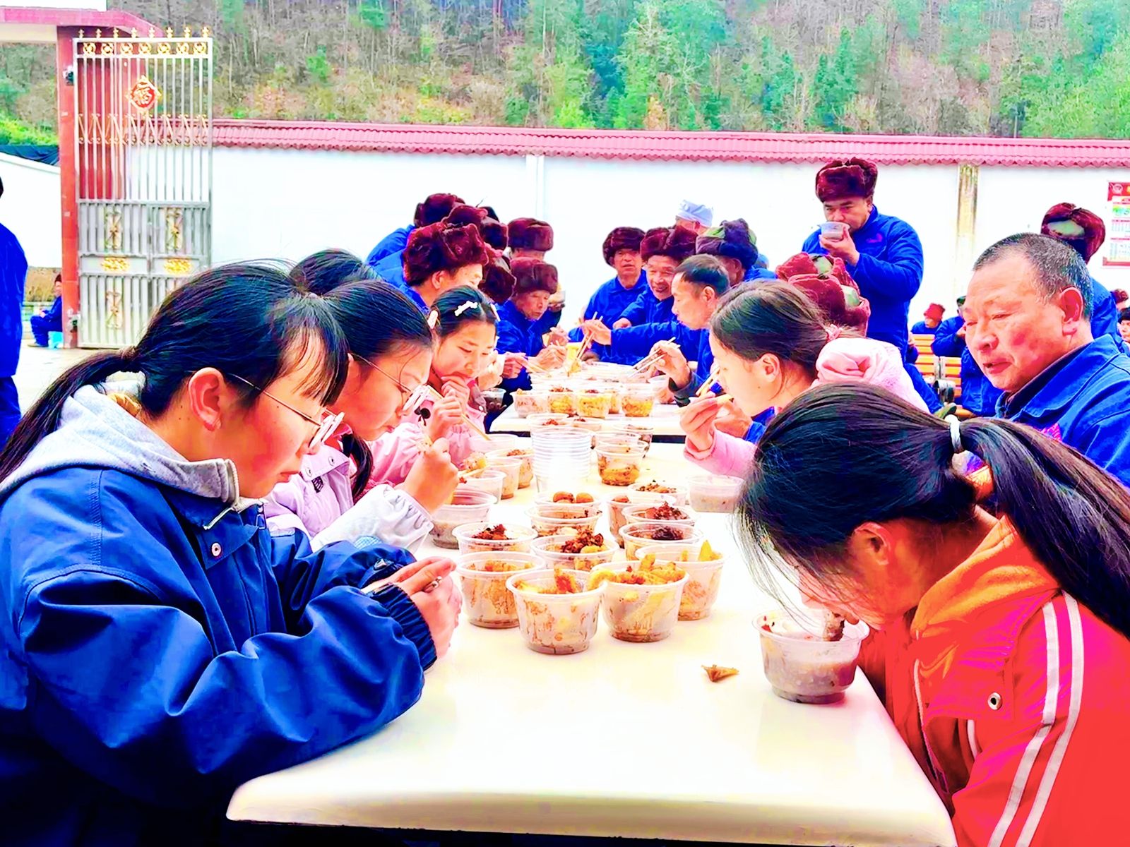 老师和学生志愿者们分工协作,洗米、泡豆、熬煮,将糯米、红枣、莲子、桂圆等食材,精心熬制,文火慢炖间,腊八粥的香甜在福利院的院落里悄然弥漫。