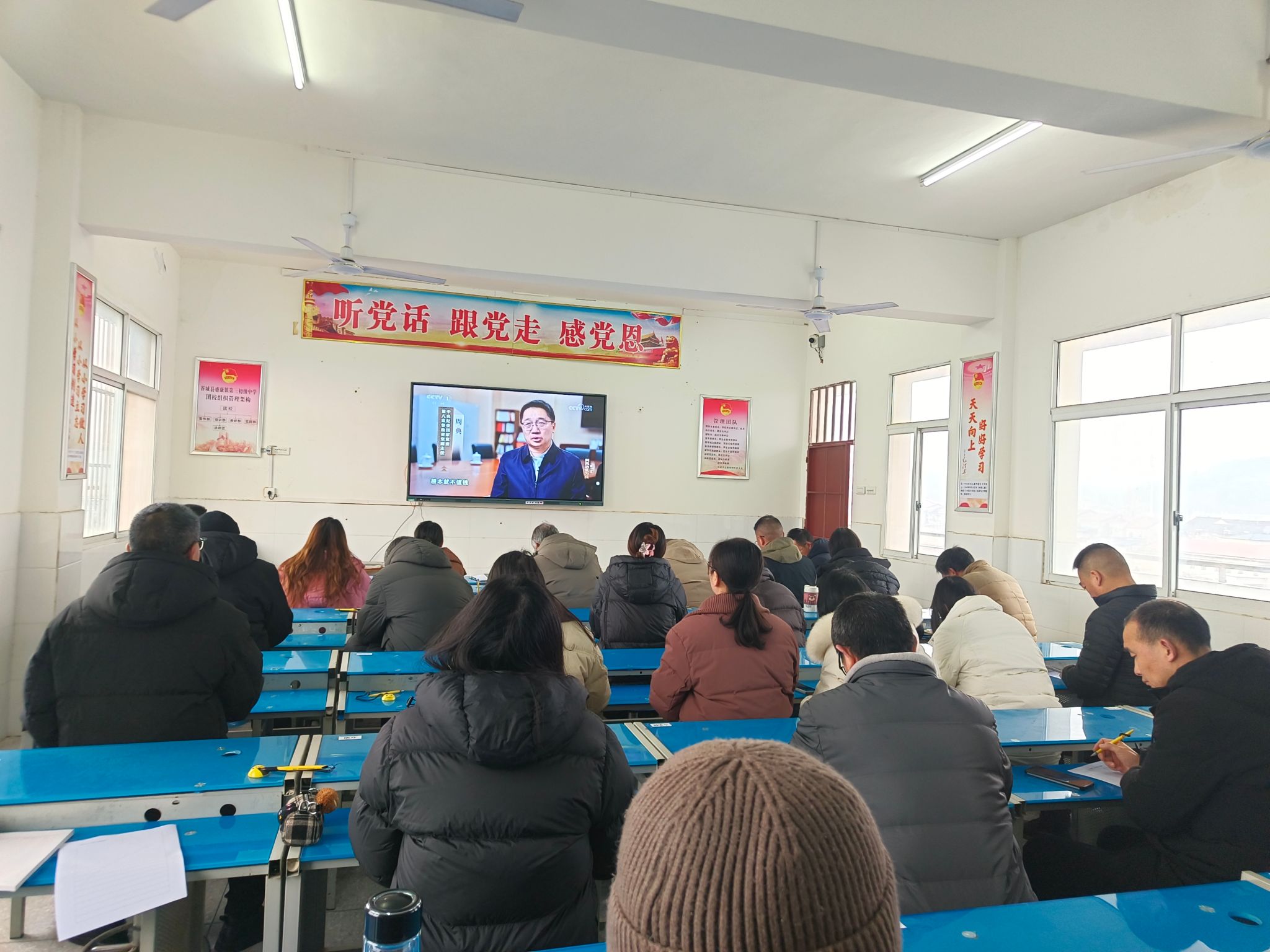 1月30日下午,谷城县盛康二中召开全体教师会议,通过观看警示教育专题片、学习政策文件、总结学期工作等形式,为全体教师拧紧师德师风与假期安全“双发条”,切实筑牢寒假期间廉洁自律与安全防护防线。