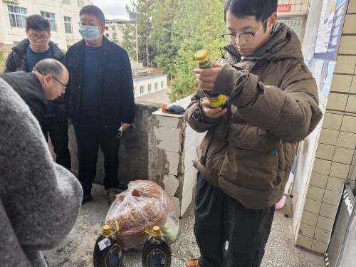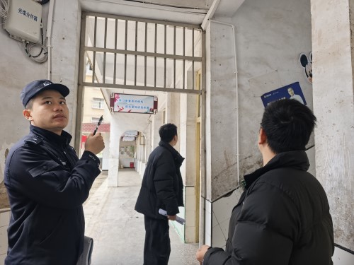 检查组一行先后实地查看校园安保、消防设施、食堂操作间、食材储存仓库等重点区域。市场监管所工作人员重点检查食堂卫生环境、食材采购索证索票、餐具清洗消毒、从业人员健康管理等情况,仔细核查进货台账,严把食品安全质量关,守护师生“舌尖上的安全”。 派出所民警围绕校园监控设备运行、防暴器材配备、消防通道畅通等进行细致排查,指导学校强化安全防范,消除治安与消防隐患。