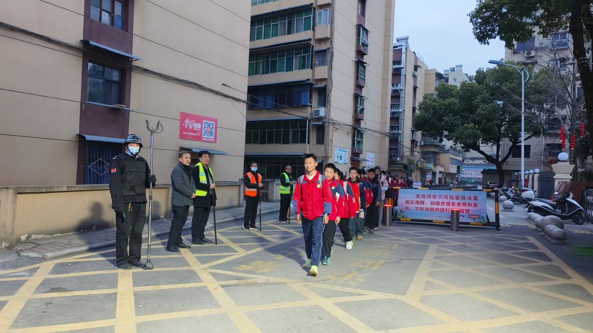 清晨7时,校园准时敞开大门。校长早已守候在校门口,面带微笑,亲切迎接每一位返校学子。与此同时,门卫、教师护校队、值日教师全员到岗,以严谨负责的态度筑牢校园安全第一道防线。郧阳交警也提前到岗,在学校周边主要路口开启“护学模式”,指挥交通、引导车辆,全力为学生平安入学保驾护航。7时15分,身着整洁校服的同学们迈着轻快的步伐,精神抖擞地有序步入校园,纯真的笑脸勾勒出新学期最美的画卷。