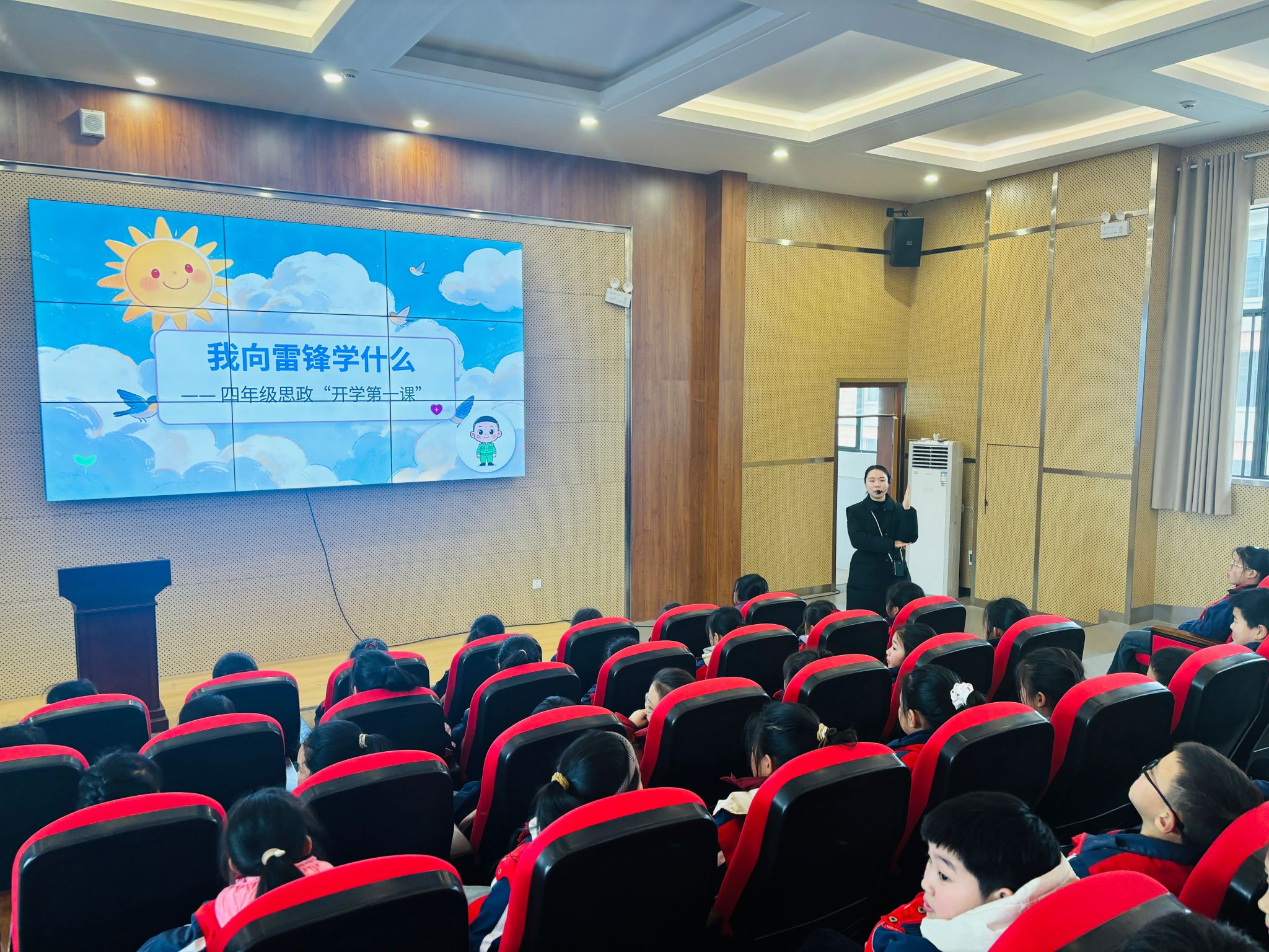 思政课堂上,老师根据四年级学生的理解能力,用简单的语言讲雷锋助人为乐的小故事,还放了适合小学生看的雷锋事迹短片。老师从“帮同学捡东西”、“主动打扫卫生” 这些身边事说起,告诉大家什么是“奉献、友爱、互助、进步”的志愿精神。互动时,同学们都积极发言,有的说要帮老师送作业本,有的说要清理路边垃圾”