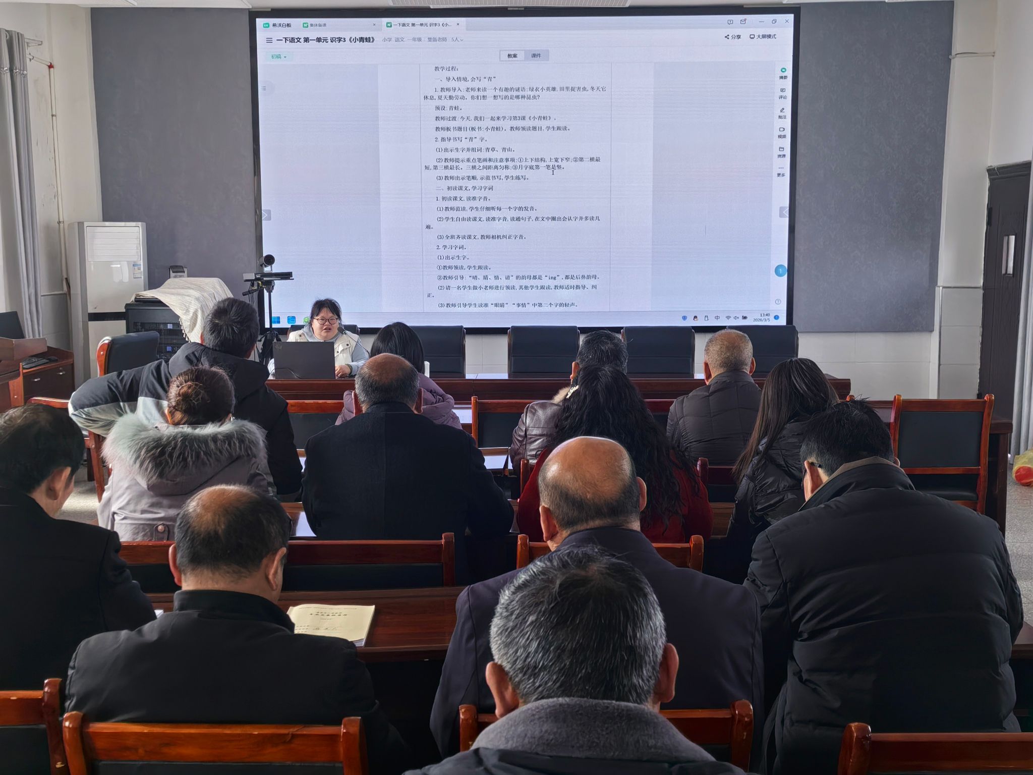 培训现场,主讲教师紧扣“集体备课”痛点,演示了交互式电子白板的云端协同编辑、AI智能助手及海量资源库等功能。以往需要围坐一室、逐页翻看教案的备课方式,如今只需在白板平台建立课件组,邀请同年级教师加入,即可实现实时在线修订、批注共享。手机投屏互动、学科工具调用等实操体验,让新进教师们直呼“大开眼界”。