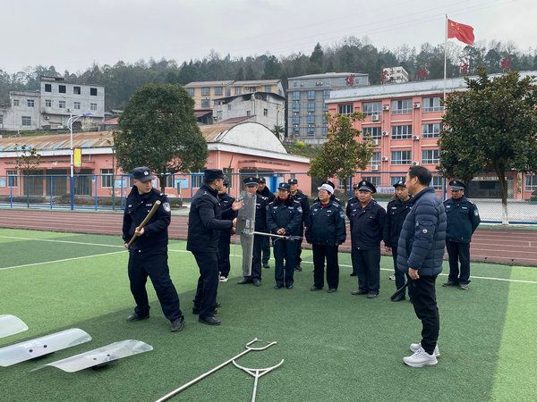 为全面强化校园安全应急处置能力,切实提升安保人员实战操作水平,筑牢校园安全防护屏障,3月5日下午,长阳土家族自治都镇湾鸭子口学区联合辖区派出所,在庄溪小学开展校园保安专项培训,辖区各中小学、幼儿园安保人员全员参训。