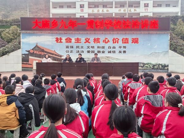 为进一步加强校园法治安全教育,增强未成年人的法律意识和自我保护能力,营造平安和谐的校园环境,3月6日,大庙乡九年一贯制学校特邀大庙乡派出所民警走进校园,为全校师生带来了一场生动而深刻的法治教育专题讲座。