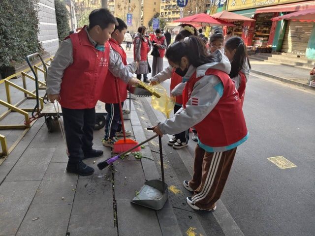 3月5日是学雷锋纪念日,十堰市实验小学教联体的少先队员代表们在团员教师和党员教师的带领下,走出校园,用实际行动践行志愿服务精神。