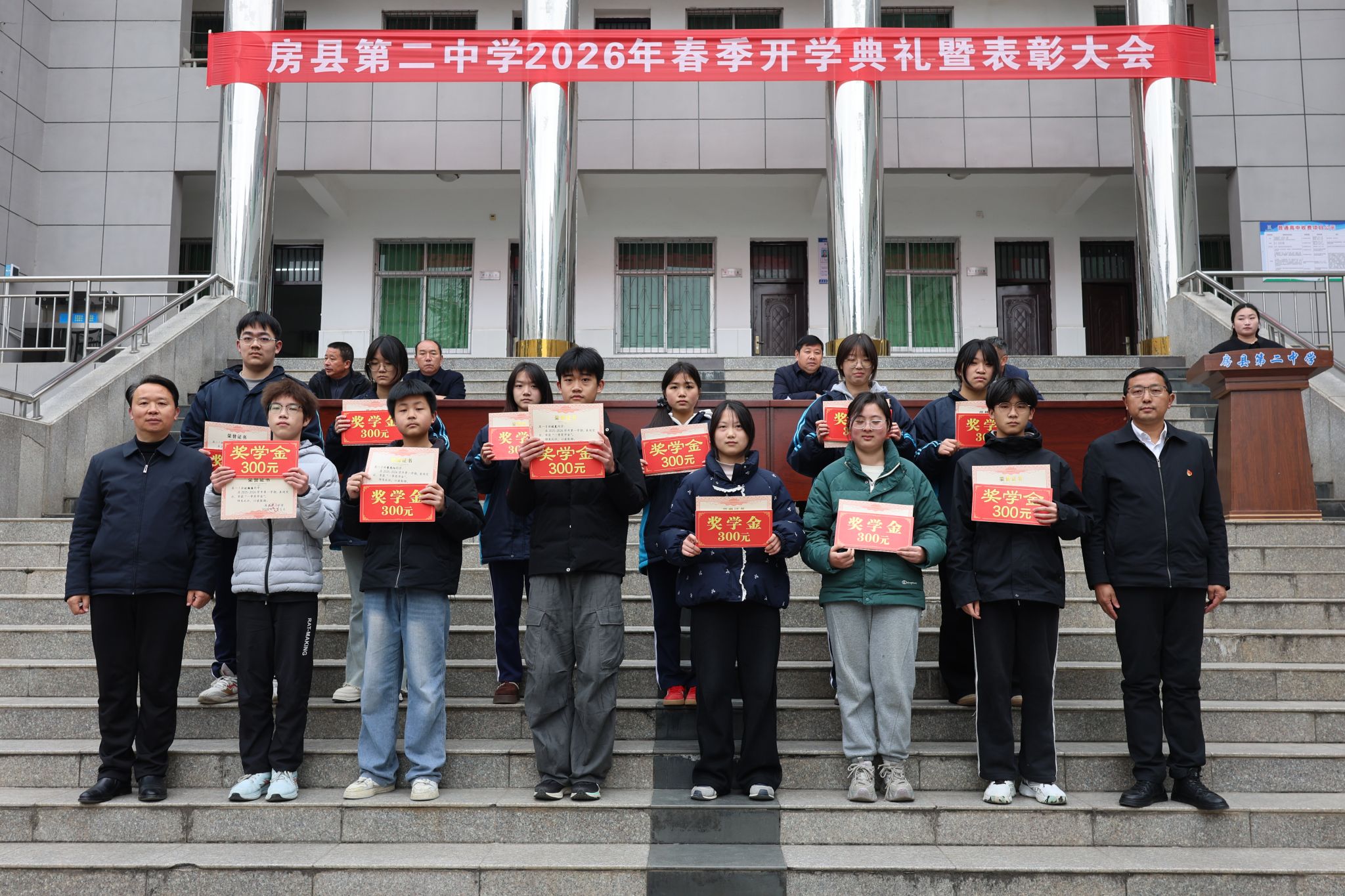 此次开学典礼暨表彰大会,表彰先进、树立标杆,凝心聚力、鼓舞斗志。全体师生将以此次大会为新起点,赓续龙马精神,笃行实干担当,以崭新风貌、昂扬斗志投身新学期工作与学习,奋力谱写房县二中教育高质量发展新篇章!