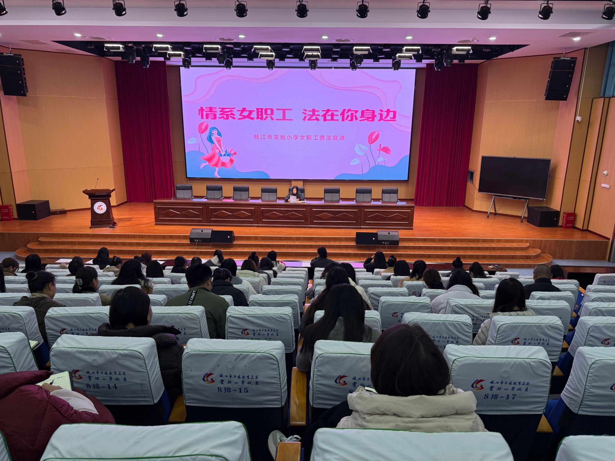 阳春三月,芳华绽放。在第116个“三八”国际劳动妇女节来临之际,枝江市实验小学精心策划开展系列庆祝活动,以普法宣讲、观影团建、健康体检等暖心举措,向全校女教职工送上节日祝福与关怀,切实提升女教职工的幸福感、归属感。