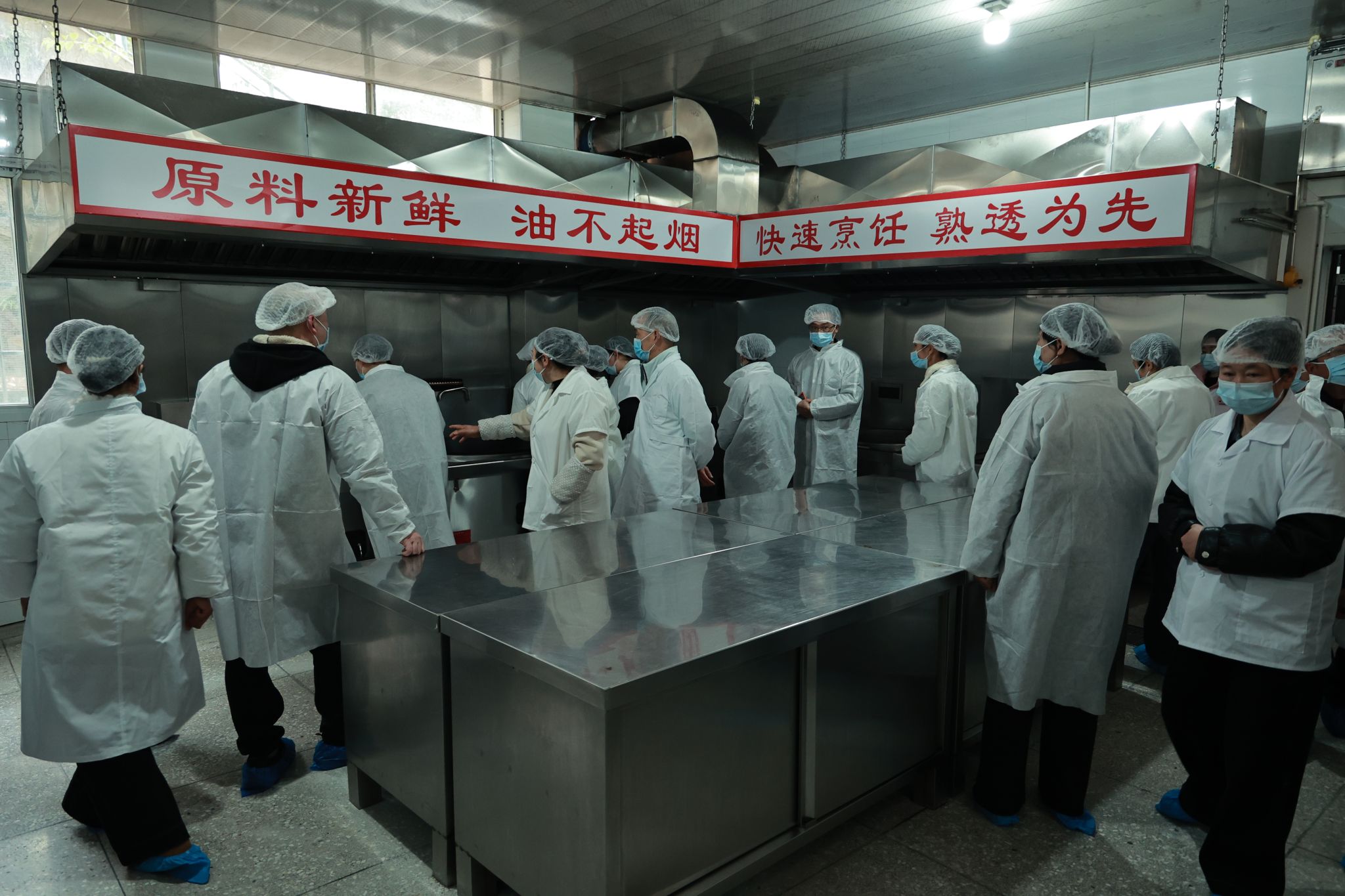 活动首先实地参观了信陵镇实验小学和光明小学的食堂工作管理。在两校食堂管理负责人的带领下,与会人员深入两校食堂后厨,实地查看食材储存间、加工操作间、餐具消毒间、留样间等重点区域。详细了解食材采购验收、索证索票、加工制作、食品留样、从业人员健康管理、明厨亮灶工程建设等方面的具体作法和成功经验。大家对光明小学和实验小学食堂整洁的环境、规范的布局、清晰的标识以及员工统一的操作流程赞不绝口。