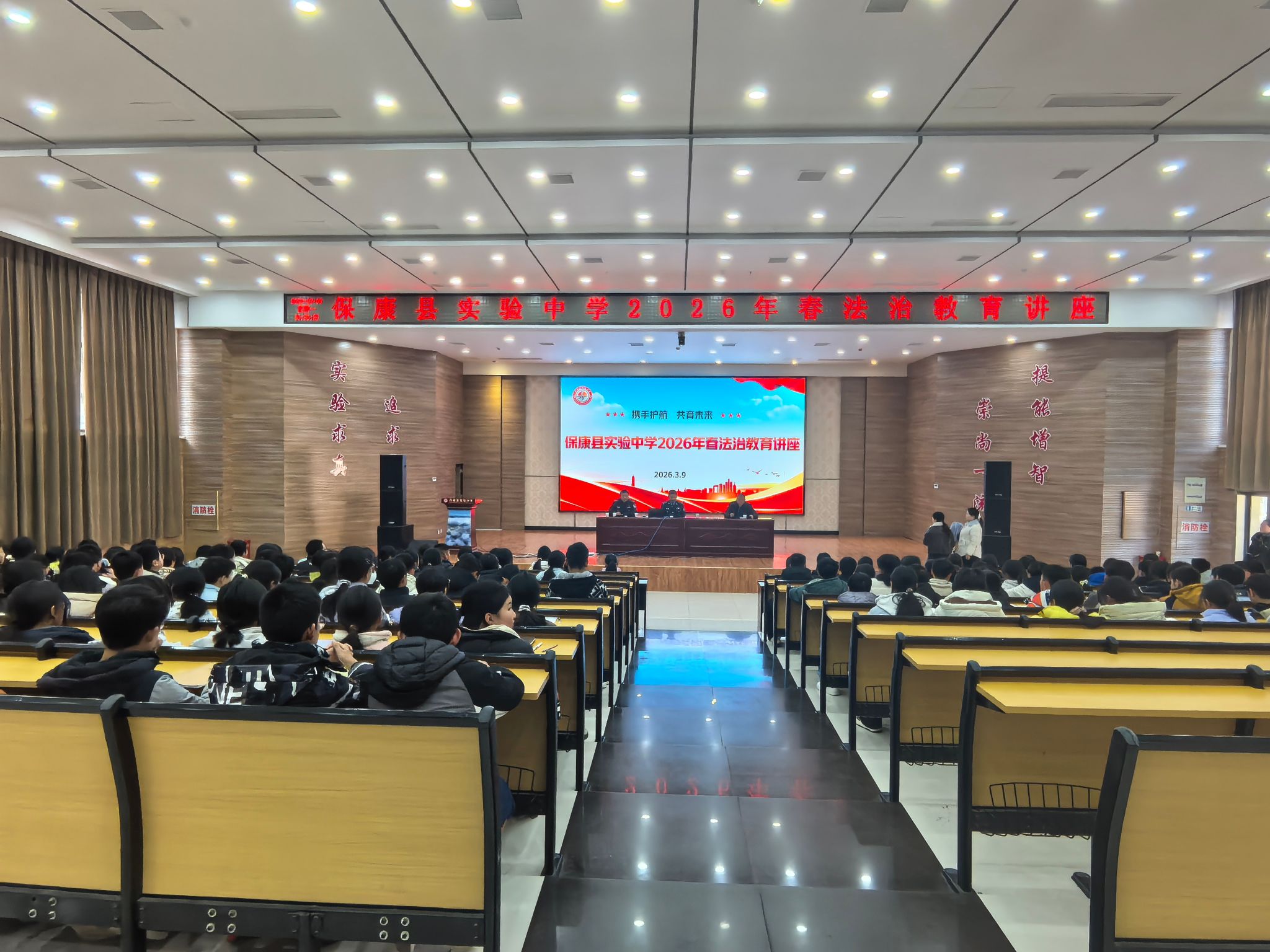 为进一步提高学生的法律意识、法治观念及自我保护能力,预防和减少青少年违法犯罪,营造平安、和谐、文明的校园环境,3月9日下午,保康县实验中学邀请城关派出所与禁毒大队警官走进校园,开展以“学法懂法守底线,防毒拒毒护青春”为主题的“开学第一课”法治教育活动。