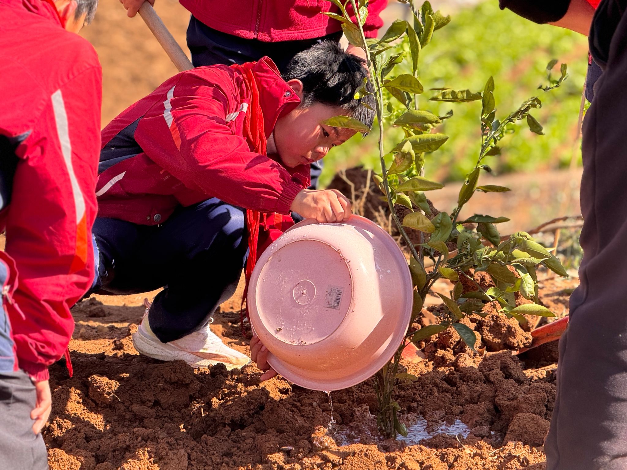 经过一小时奋战,数十株橘树苗在劳动基地“安家落户”,嫩绿的枝叶在春风中摇曳,为校园增添勃勃生机。活动中,老师还结合橘树生长特点,向同学们讲解植物养护知识,将劳动教育、生态教育与学科知识有机融合。