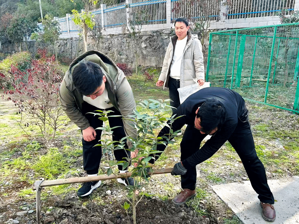 3月11日,竹山县竹坪小学组织教师开展“师徒共植希望林,携手共育栋梁材”主题植树活动,为校园添新绿。