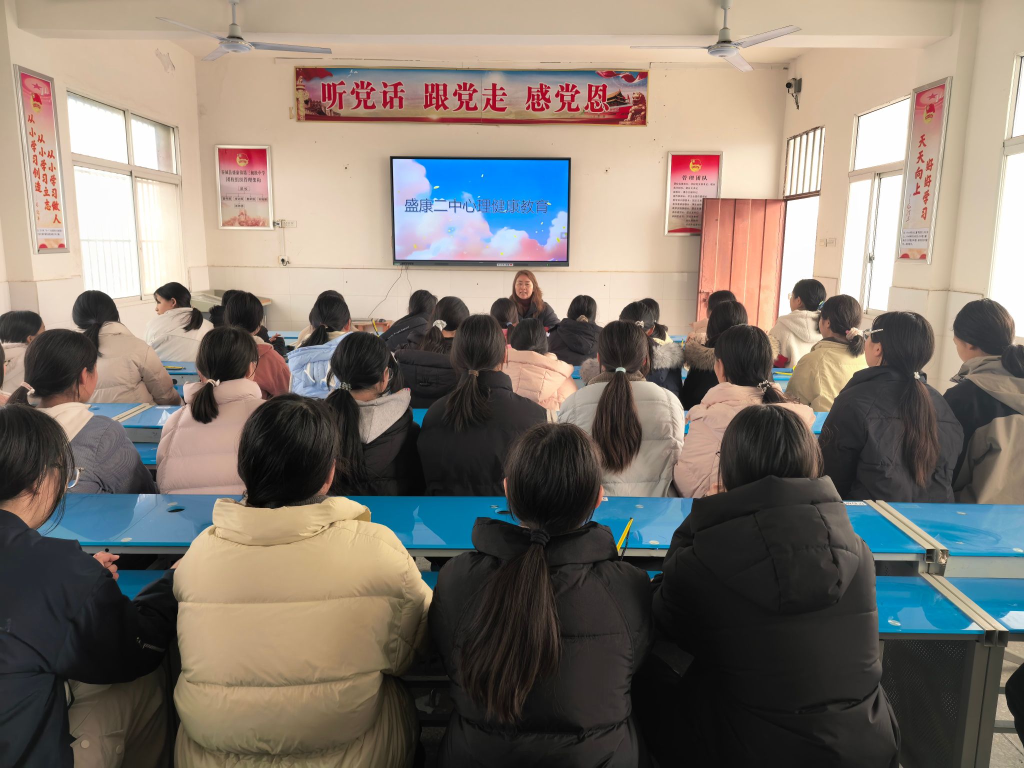 3月12日上午,谷城县盛康镇第二中学召开青春期女生专题座谈会,为全校青春期女生送上一堂暖心实用的成长指导课。学校妇女主任胥联华、女教师代表张路、黄春丽共同主讲,助力女生健康成长、自信绽放。