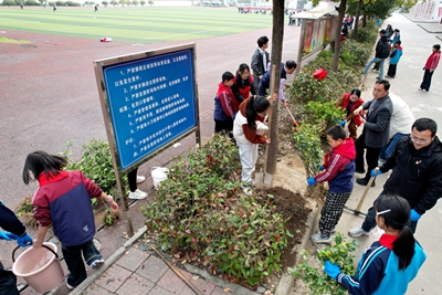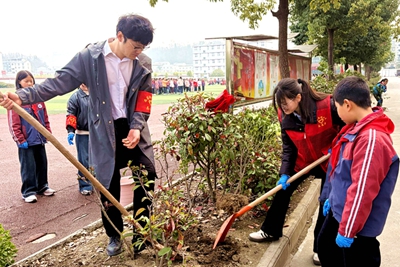 3月12日,在第48个植树节来临之际,竹山县麻家渡镇小学党支部组织师生志愿者开展“争做绿色使者 建设绿美校园”义务植树活动。