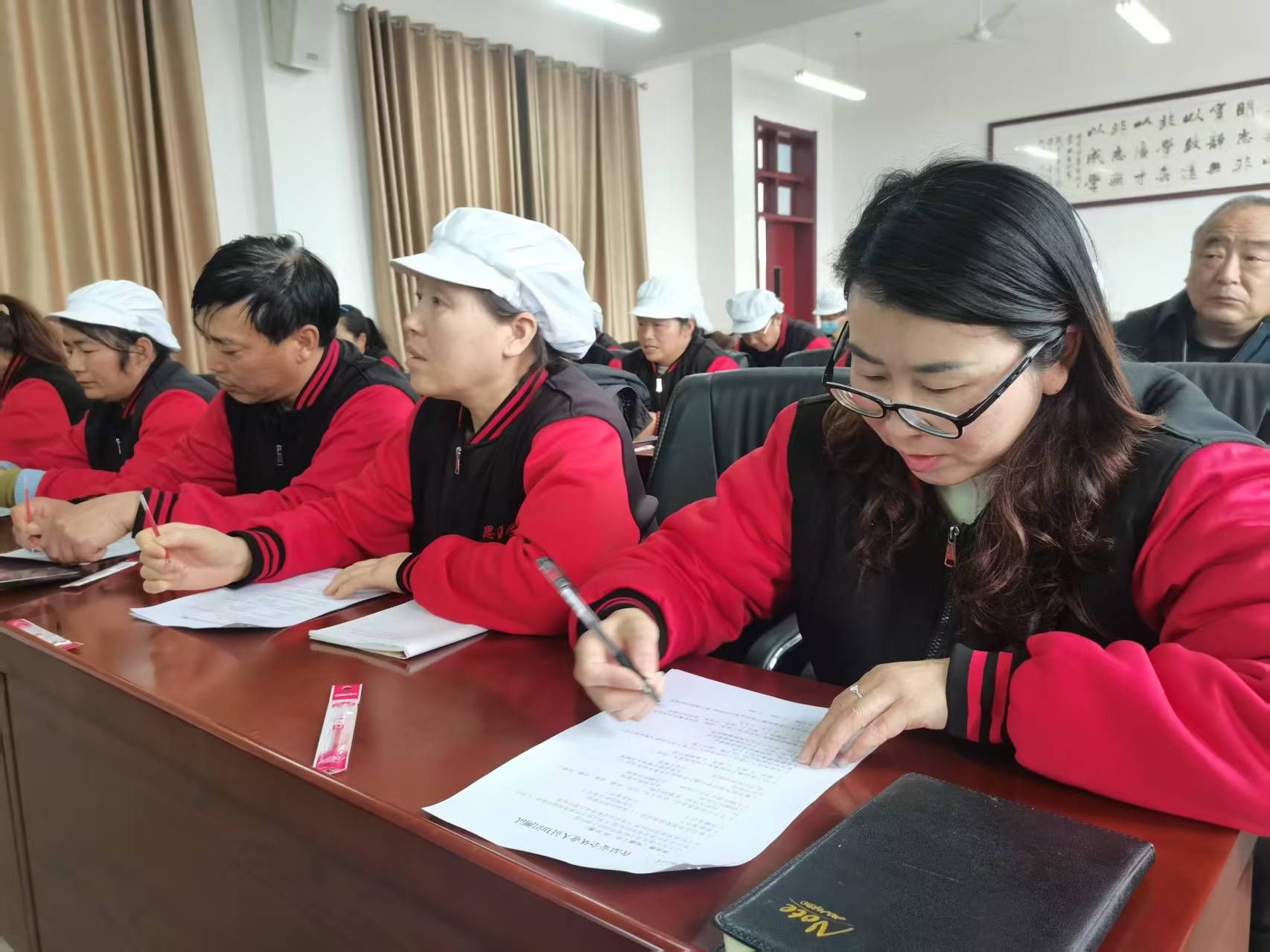 培训中,组织学习了《中华人民共和国食品安全法》《学校食品安全与营养健康管理规定》、鄂食药安办发【2026】1号文件等法律法规。结合学校食堂管理实际,从环境卫生、食材准入、食材验收、食材储藏、食材加工、设备清洗、餐具消毒、食品留样、“三防”工作、数字食堂运营、食材溯源等方面进行翔实的培训并提出了具体的操作要领,让每一个岗位都职责明确、操作规范、运行安全、注重细节、服务周到,把温情彰显在岗位上、体现在细节上、落实在服务中。同时,就全面推行色标、卡位管理工作进行了部署,以提升食堂食品安全风险防控标准化、规范化管理水平,办好家长满意、学生舒心、社会放心的食堂。