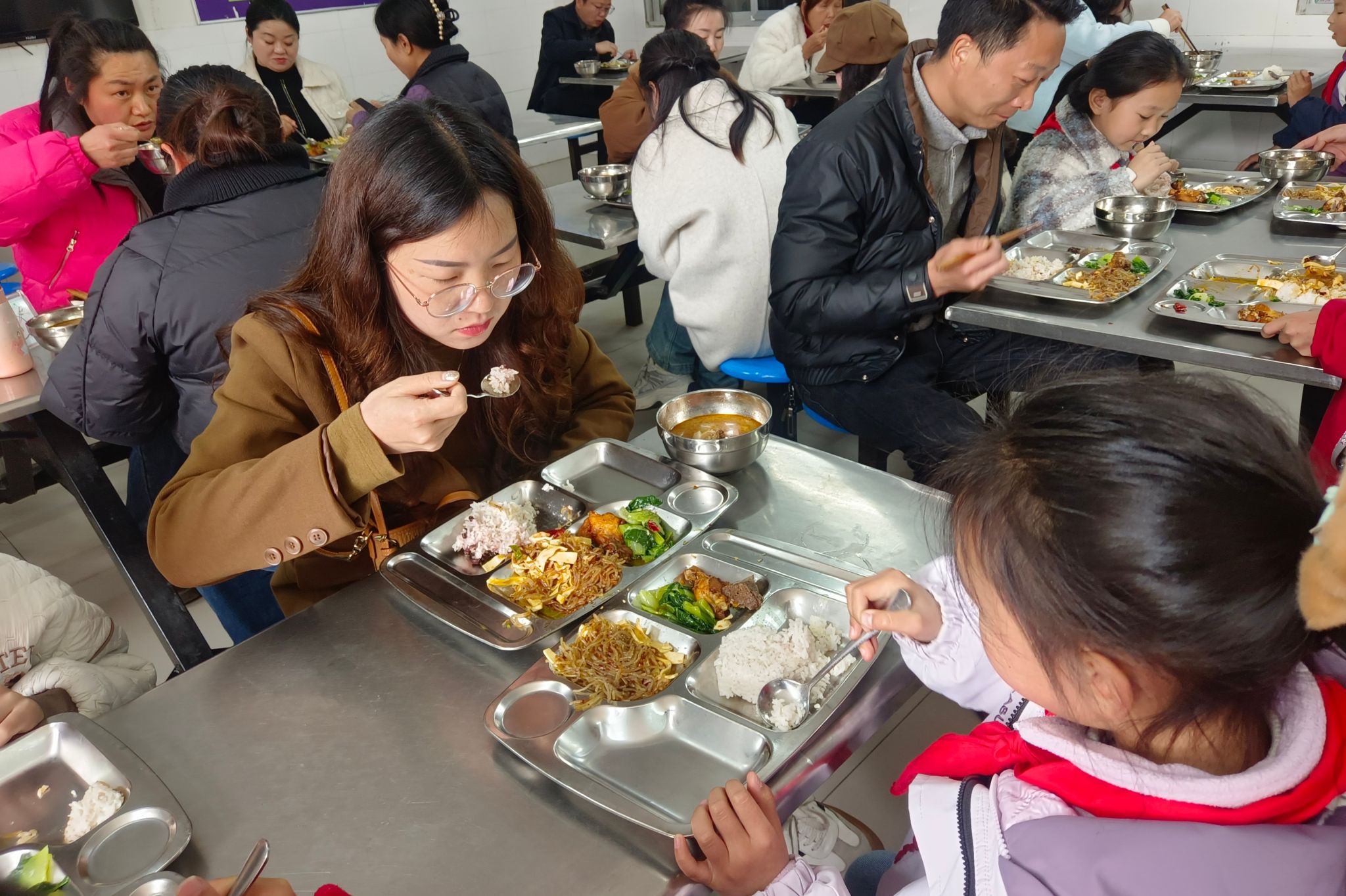 参观结束后,家长代表与孩子们共进午餐,亲身体验餐食品质、口味与分量,直观感受学校食堂的营养搭配与服务保障。用餐过程中,家长们认真交流、细致反馈,对学校用心用情做好学生膳食工作给予充分肯定。