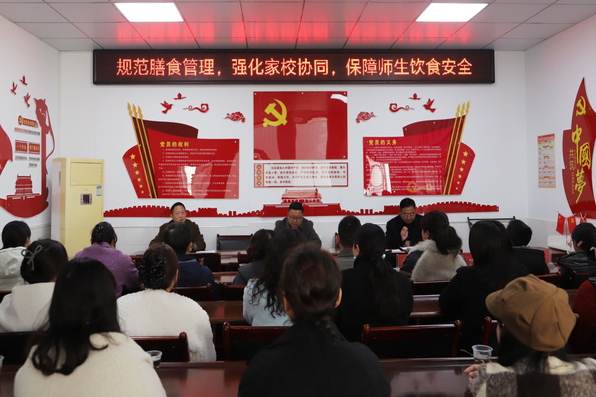 为筑牢校园食品安全防线,搭建家校协同监管平台,切实保障学生饮食健康与营养均衡,3月12日,保康县城关镇小学成功举办“食堂开放日”活动,并同步召开学校膳食管理委员会与膳食监督委员会工作会议。24名家长代表应邀参会,走进食堂、全程监督、陪餐共餐,以透明化、沉浸式体验共护学生“舌尖上的安全”。