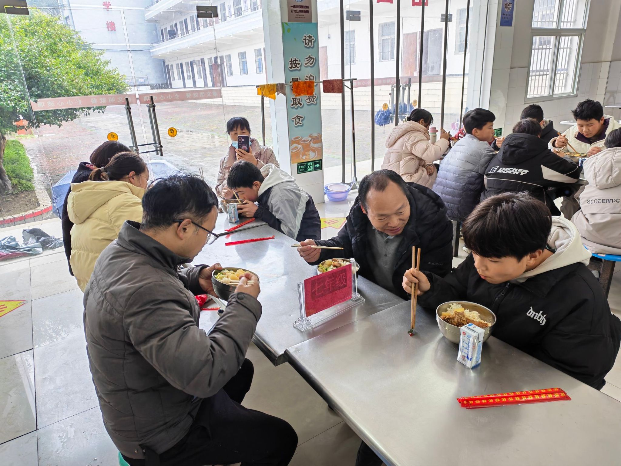 实地参观结束后,恰逢学生午餐时间,家长代表们走进餐厅,与孩子们一同有序就餐,亲身体验学生餐的口味与营养。餐桌上,荤素搭配合理、色香味俱全的菜品,温热适宜的餐食,让家长们真切感受到学校对学生饮食的用心。就餐过程中,家长们与孩子亲切交流,询问孩子的用餐感受,同时认真记录餐食的口味、分量等细节,不少家长表示,亲眼看到食堂的规范管理和可口餐食,彻底打消了心中的顾虑,也更加放心孩子在校的饮食安全。