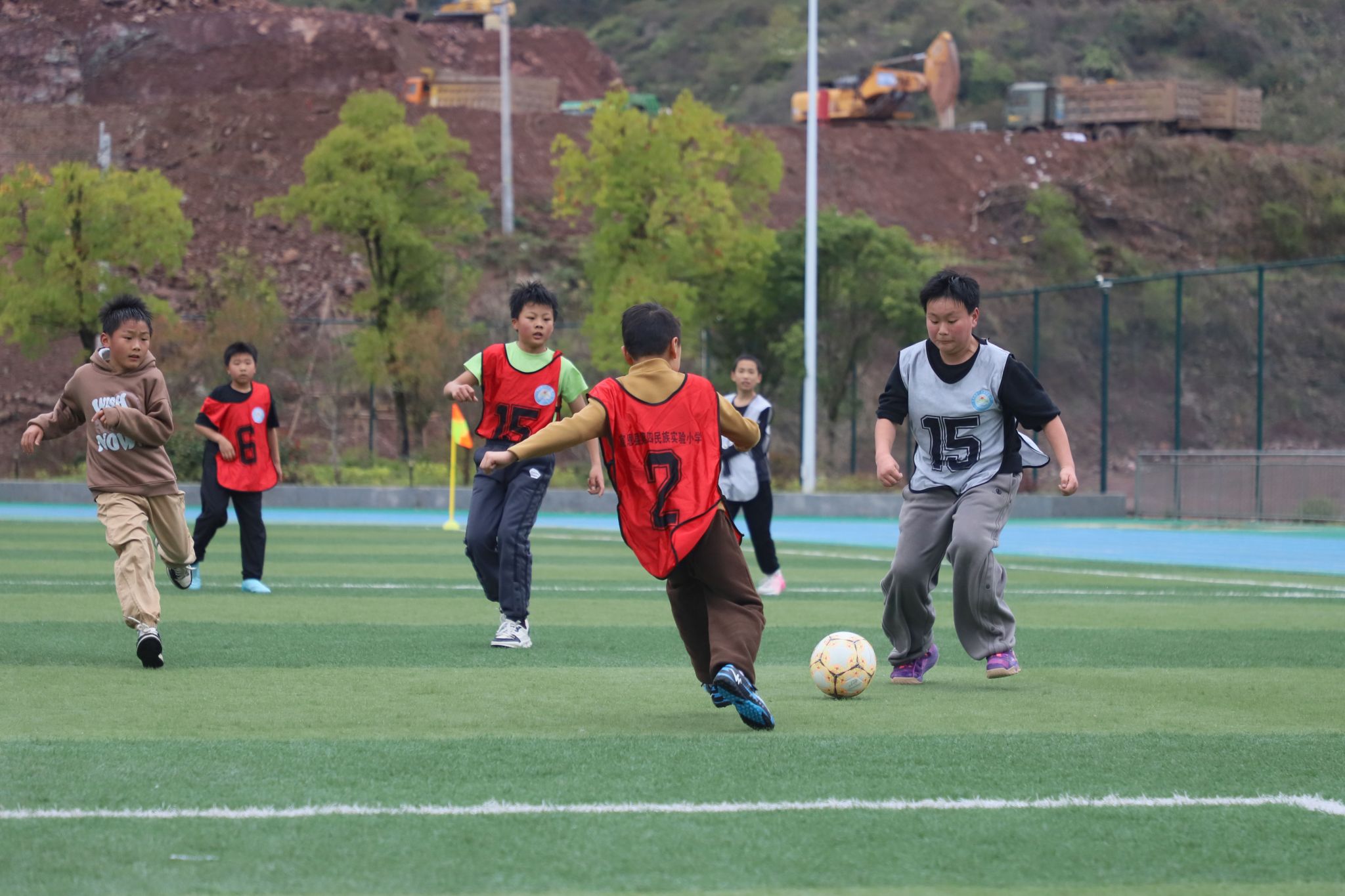 赛场上,小球员们精神抖擞、眼神坚定,在老师和同学们的助威呐喊声中全力奔跑、传球、射门,尽情感受绿茵场上的激情与欢乐。
