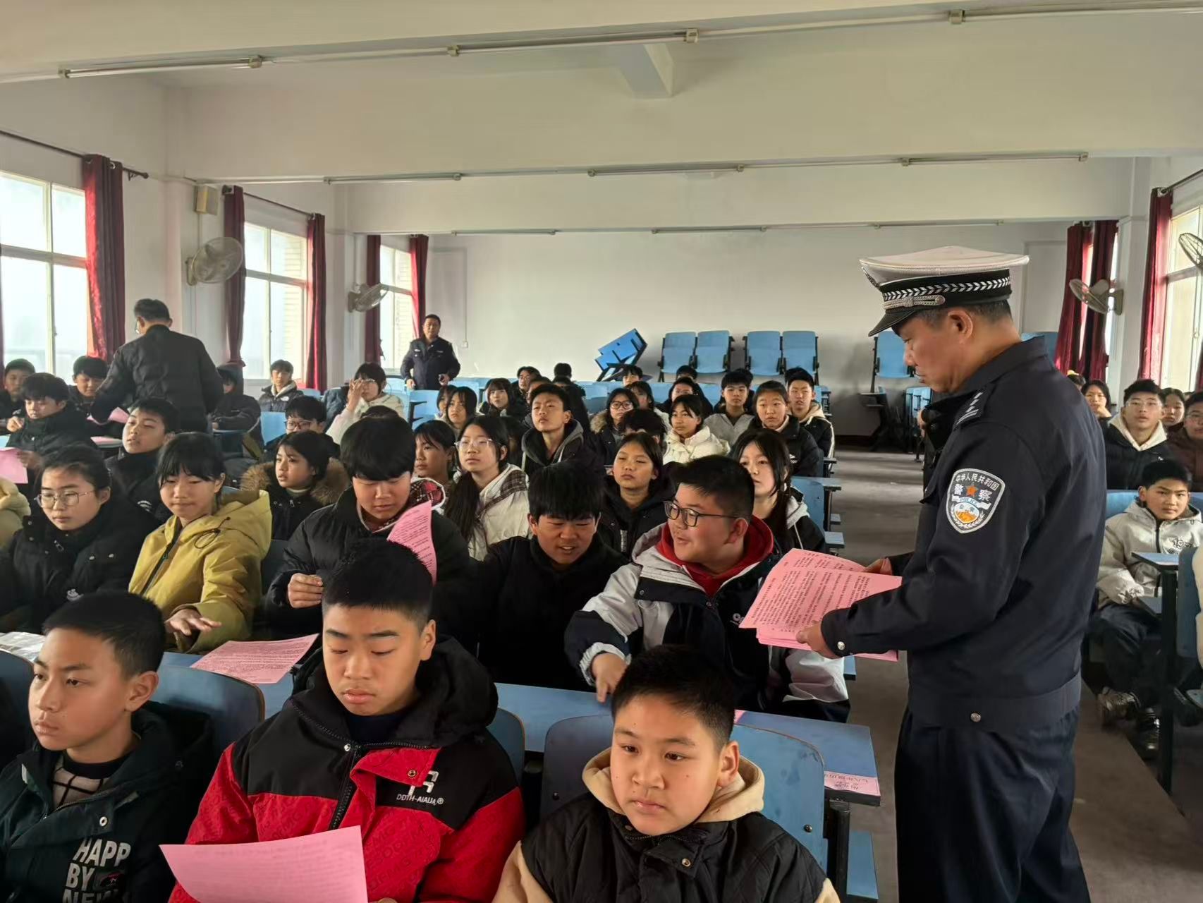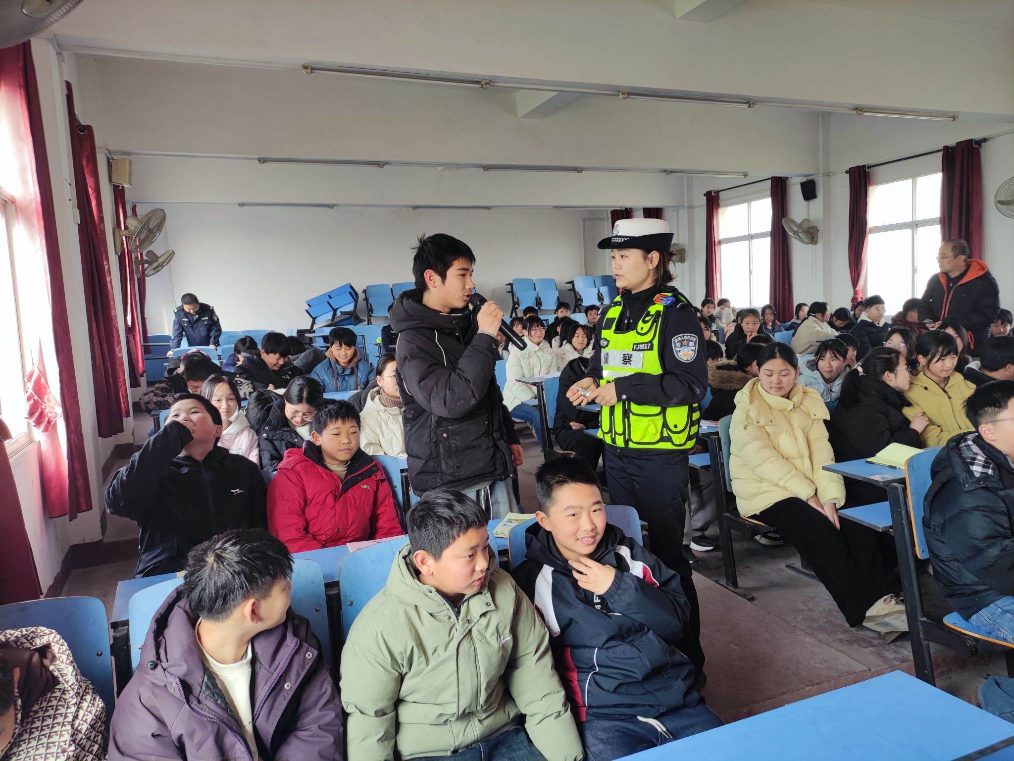 3月19日上午,汉川市公安局交通管理大队联合马鞍派出所走进马鞍乡喻河中学,以沉浸式体验、互动式宣讲的创新形式对师生开展交通安全宣传讲座。活动现场,来自市交警大队的王超华警官紧扣学法守法、文明出行、安全自护三大主题,采用以案释法、法条解读、互动问答、视频警示相结合的方式,内容贴近生活。“骑电动自行车需要戴头盔吗?”“过十字路口要看什么?”“你听说过车辆的盲区吗?”一个个贴近生活的问题抛出后,同学们踊跃举手、积极抢答,现场气氛十分热烈。此次讲座将法治教育与交通安全教育有机融合,有效提升了师生的法治观念与安全防范能力,为建设平安校园、文明校园打下坚实基础。