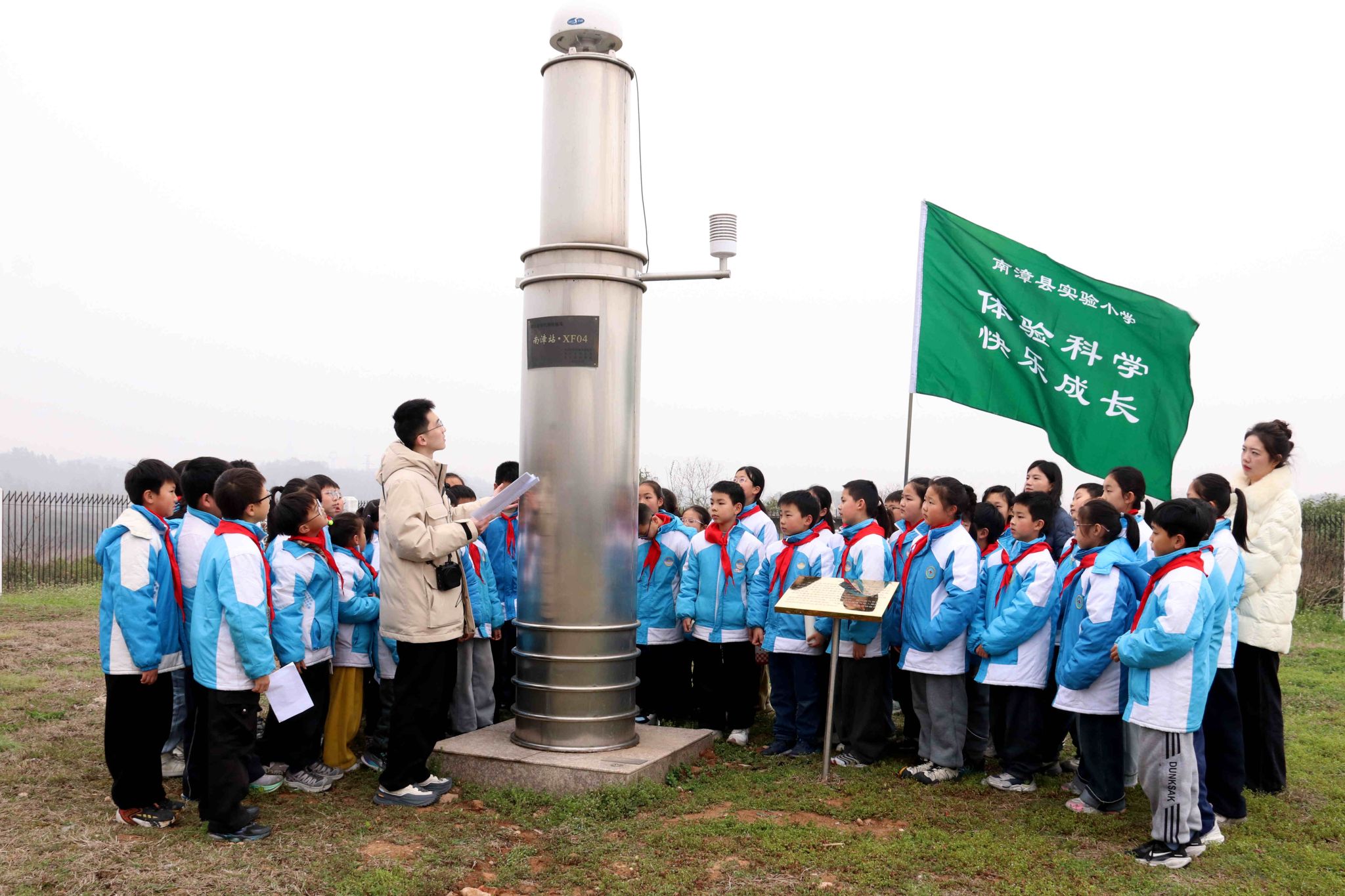 在第66个世界气象日即将来临之际,3月19日下午,一堂生动的“行走的思政课”在南漳城北的国家基准气候站开讲。南漳县实验小学四(1)中队的54名少先队员,在科技辅导员的带领下,走进气象观测一线,开展了以“探气象奥秘 护生态家园”为主题的气象科普研学活动,零距离探究“观云测雨”的科学密码,在实践中将课堂学习与社会认知深度融合。