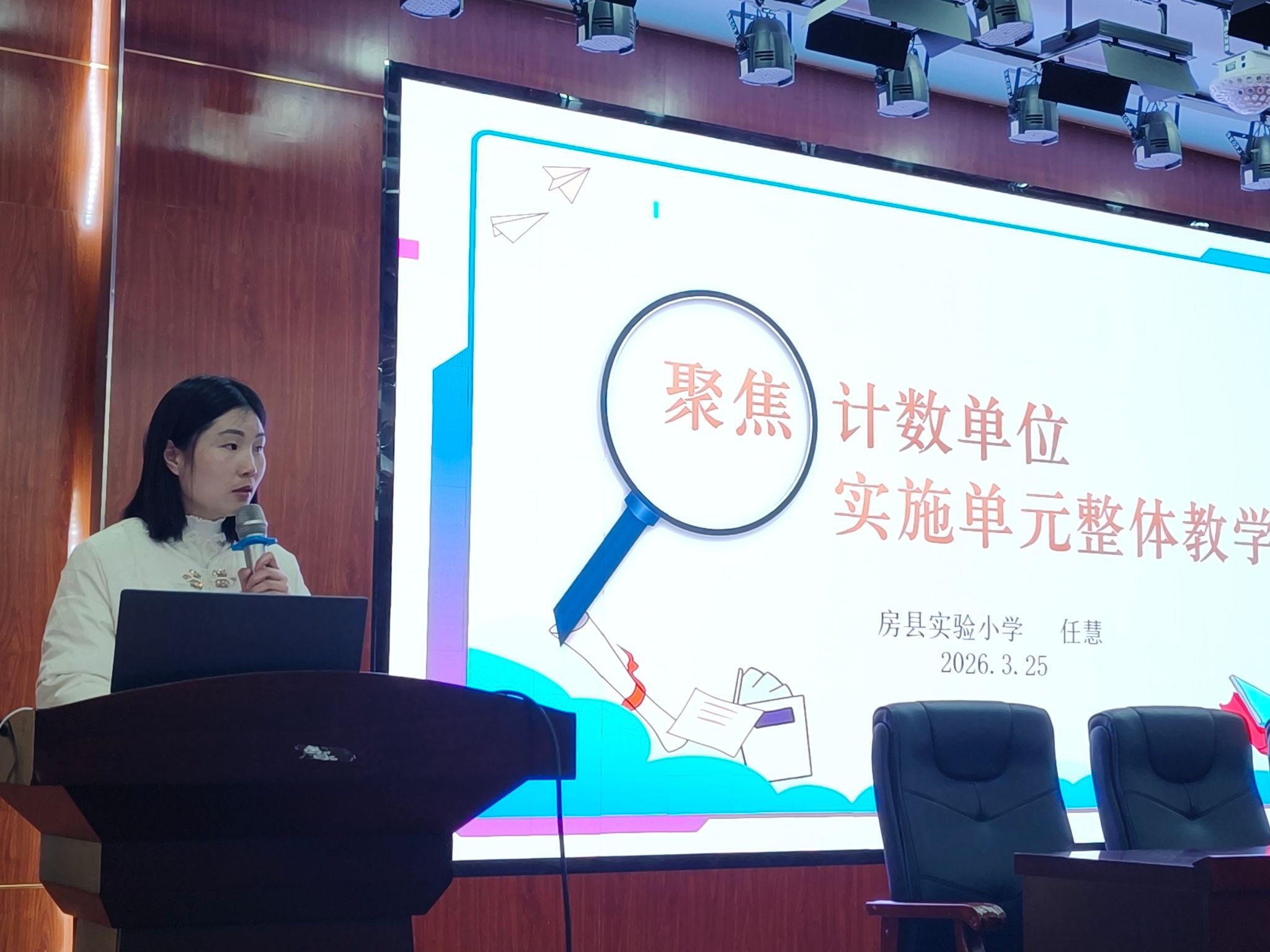下午的讲座环节,实验小学任慧老师以《聚焦计数单位,实施单元整体教学》为题,结合本次同课异构的教学内容,从教学理念、教学策略、单元整体教学设计等方面展开深入讲解,内容兼具理论高度与实践指导意义,为乡村教师优化课堂教学、提升教学质量提供了新思路、新方法。讲座结束后,名师工作室主持人对本次送教下乡活动进行全面总结,她高度评价了本次活动的组织与开展成效,对授课教师的精心准备和参会教师的积极参与表示认可,同时希望全体教师能以此次活动为契机,加强教学研究,将所学所悟运用到实际教学中,不断提升自身教学水平。