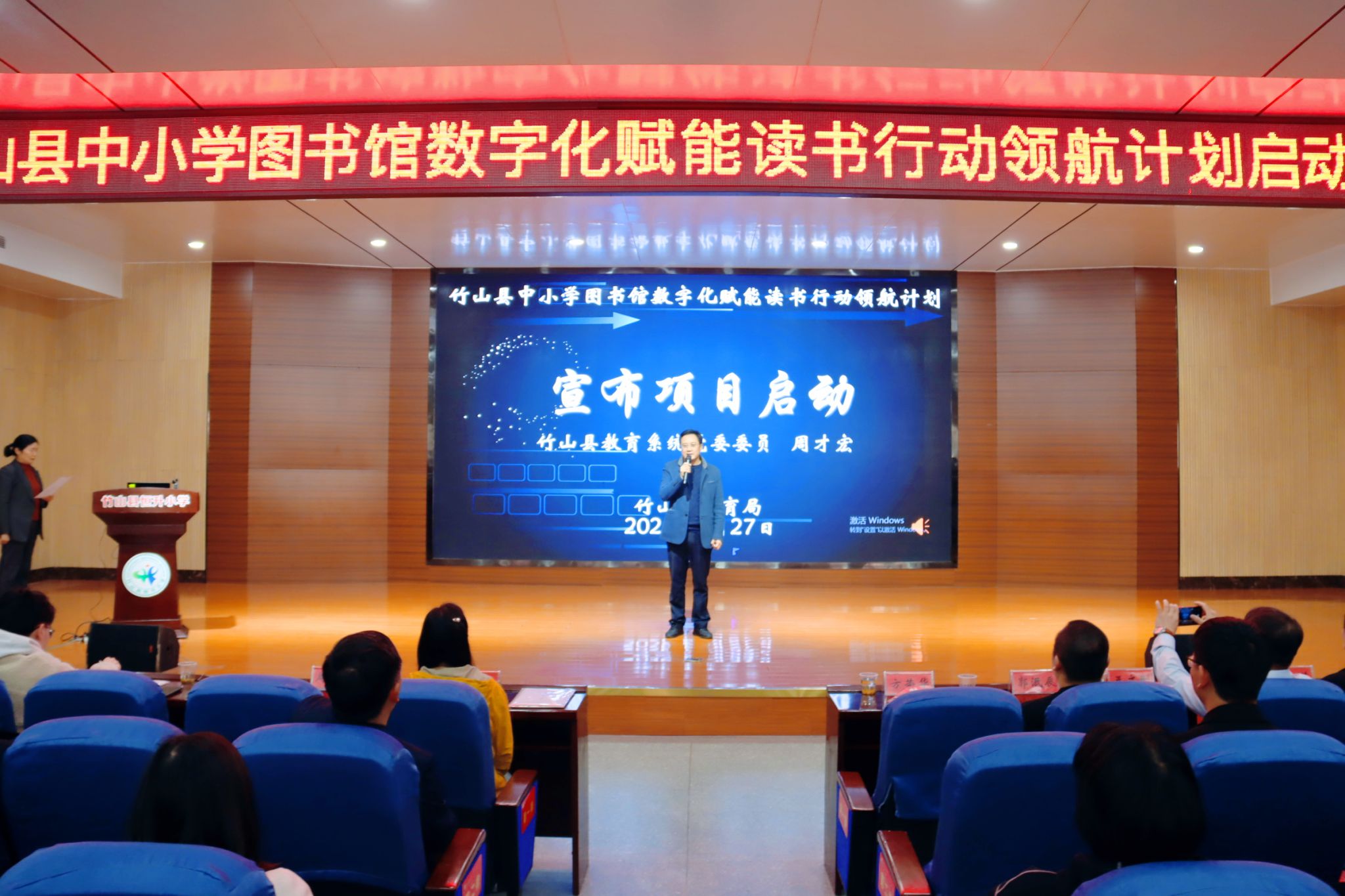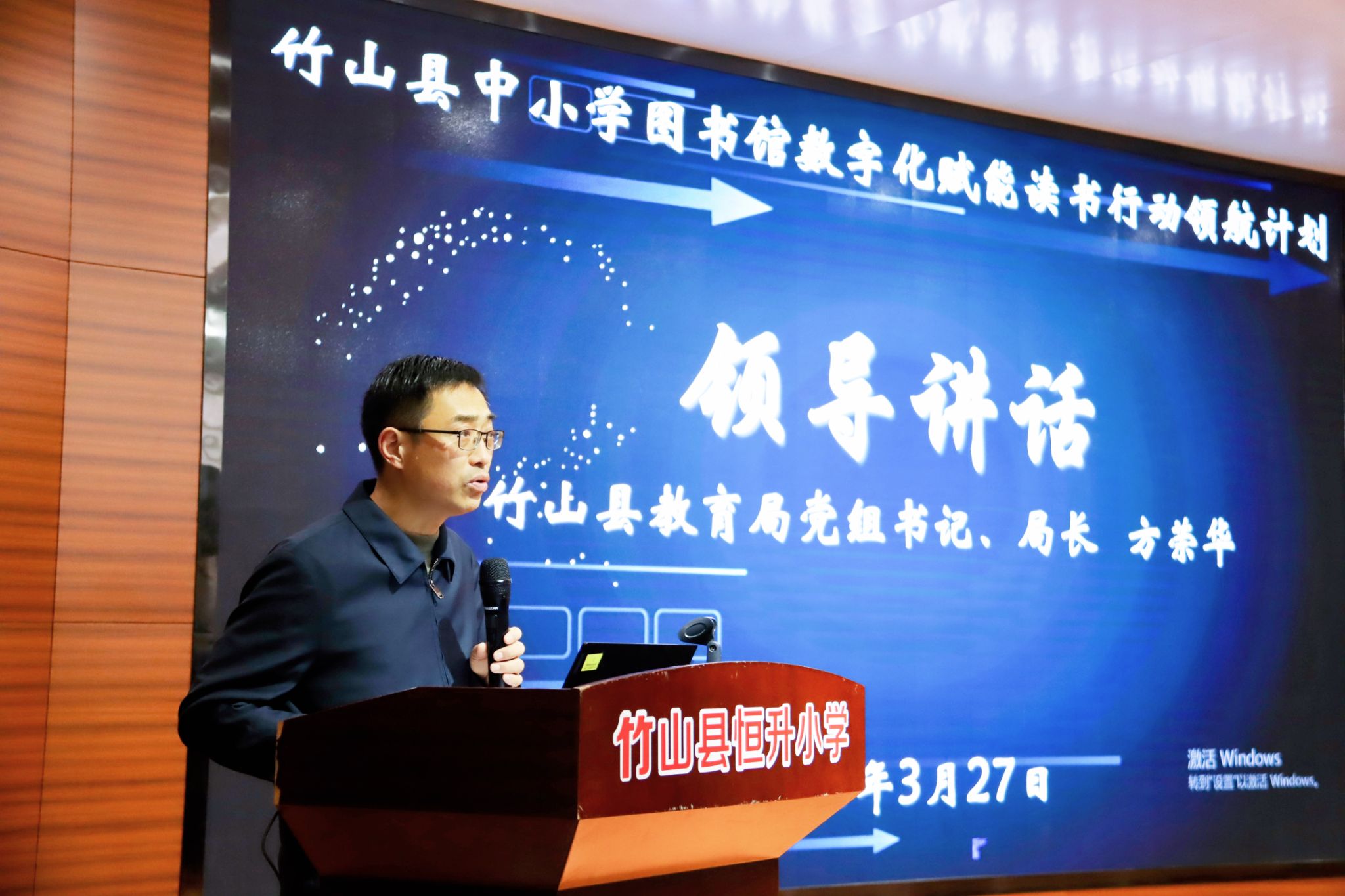 启动仪式上,竹山县教育局党组书记、局长方荣华讲话。他充分肯定了全县20所学校成功申报国家项目的成果,深刻阐述了图书馆数字化赋能读书行动的重要意义,并对县级项目实施提出了明确要求。强调各学校要以此次行动为契机,破解图书资源陈旧、管理信息化水平不高、阅读推广实效不强等痛点问题,全面提升竹山县中小学图书馆服务能力,助力书香校园建设。