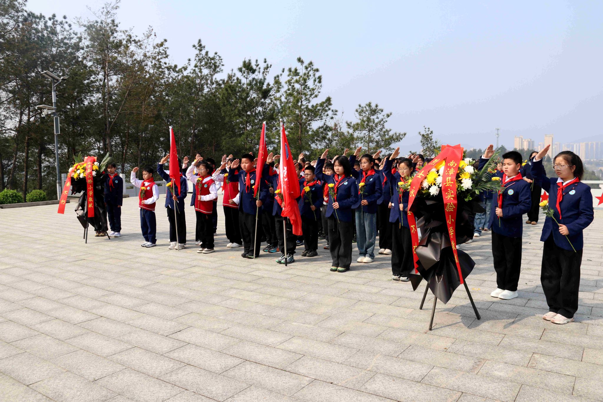 上午9时,身着整洁校服、佩戴鲜艳红领巾的少先队员们在学校操场整齐集结,经学校德育处安全宣导后有序乘车前往荆山烈士陵园。作为襄阳市中共党史教育基地,这里长眠着为国防工程献身的革命烈士,陵园内松柏苍翠、纪念碑巍然矗立,松柏苍翠间尽显庄严肃穆。