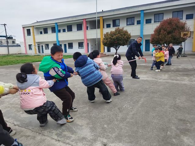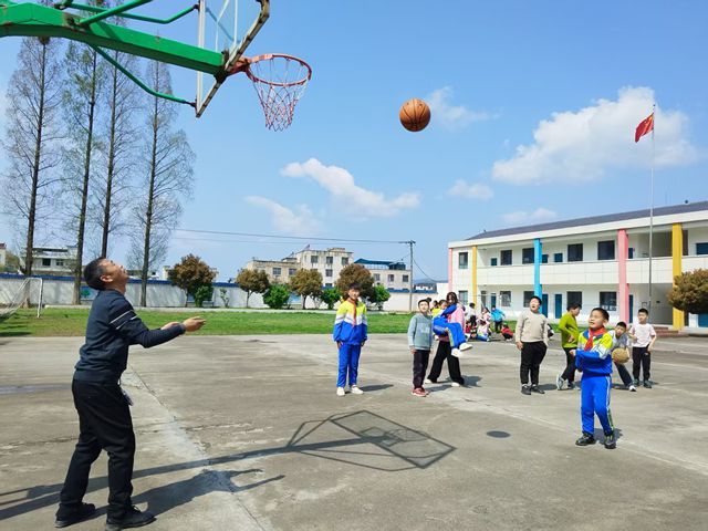 上午9时25分,操场上两个班级正在同时上着体育课,口令声、欢笑声此起彼伏:一个班级的孩子们紧握长绳,扎稳马步,齐心协力进行拔河比赛,神情里满是是必胜的信念;另一个班级的篮球课上,学生们奔跑追逐,投篮、传球,专注防守,全情投入,尽情享受篮球带来的快乐。整个校园洋溢着运动的热情。
