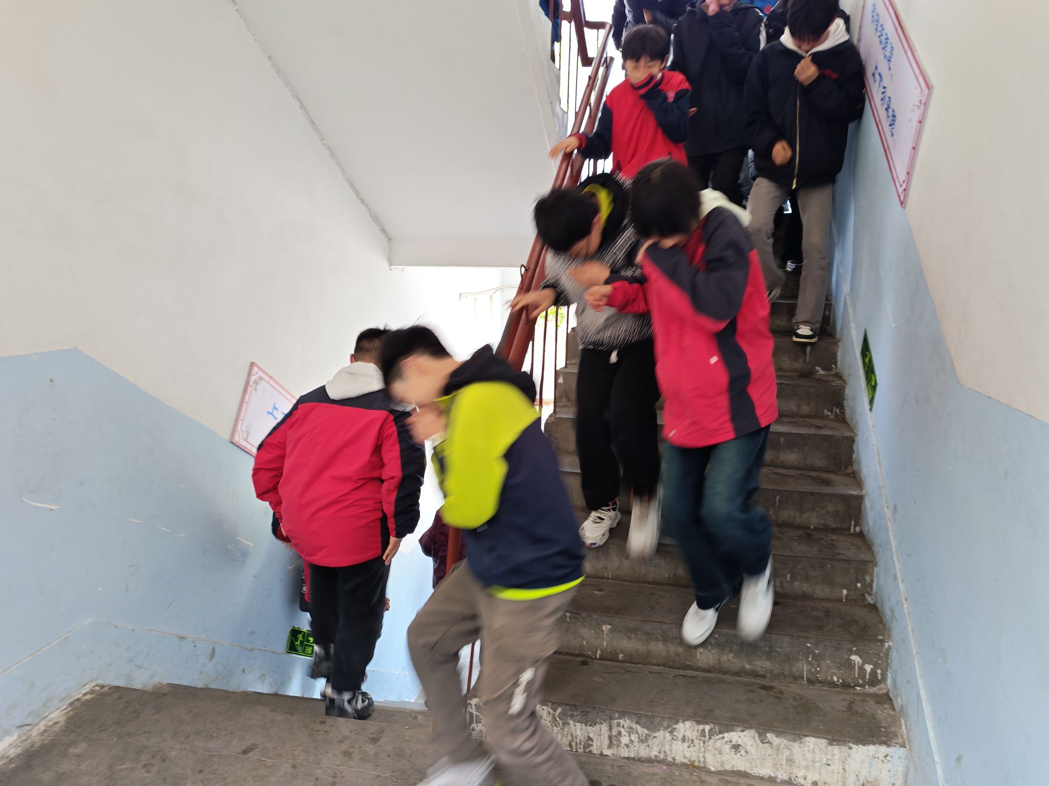 警报声响起的瞬间,学校立即启动消防疏散演练预定方案,各班级班主任第一时间抵达教室,迅速关闭教室电源,沉着有序地指挥学生用湿毛巾捂住口鼻、弯腰低姿,沿预定疏散路线快速撤离,全程反复叮嘱学生“不推挤、不慌张、靠右行”,确保每一名学生安全有序撤离。