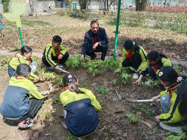 4月1日,阳光正好,丹江口市丁家营镇小学劳动实践基地里,淫羊藿、百合、金银花、菊花等中药材幼苗在暖阳下肆意生长,一场别开生面的管护实践活动热烈开展。