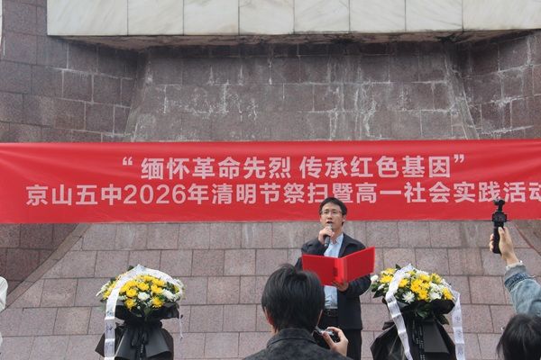 最后,京山五中党总支副书记、校长陈浩讲话。他强调,我们要铭记烈士们的英勇事迹,继承和发扬他们的革命精神;党员教师要坚守育人初心,勇担时代使命;团员青年要不忘初心、牢记使命,坚定理想信念,增强“四个自信”,为实现中华民族伟大复兴的中国梦而努力奋斗。