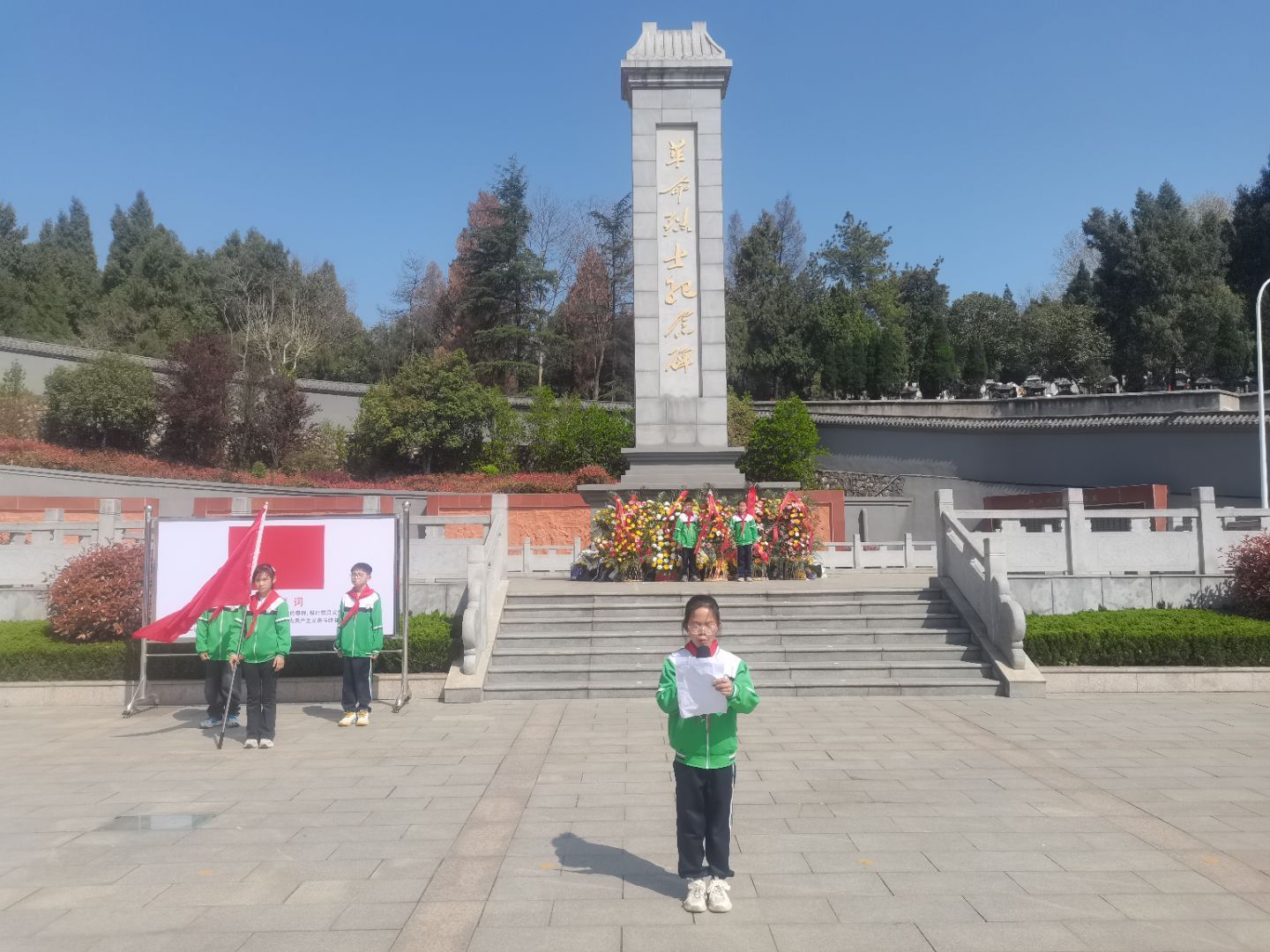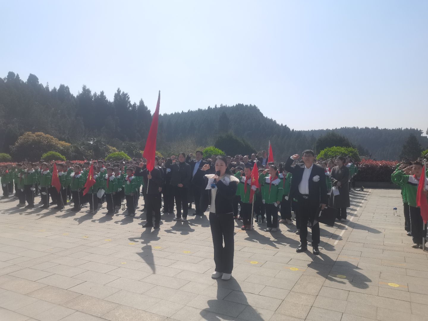 哀乐低回,全体师生垂首默哀3分钟,深切缅怀为民族解放和人民幸福英勇献身的革命先烈。在少先队员代表发言后,全体少先队员重温入队誓词,党员教师在党旗下重温入党誓词,铿锵誓言回荡在陵园上空,彰显着师生们传承英烈精神、勇担时代使命的决心。
