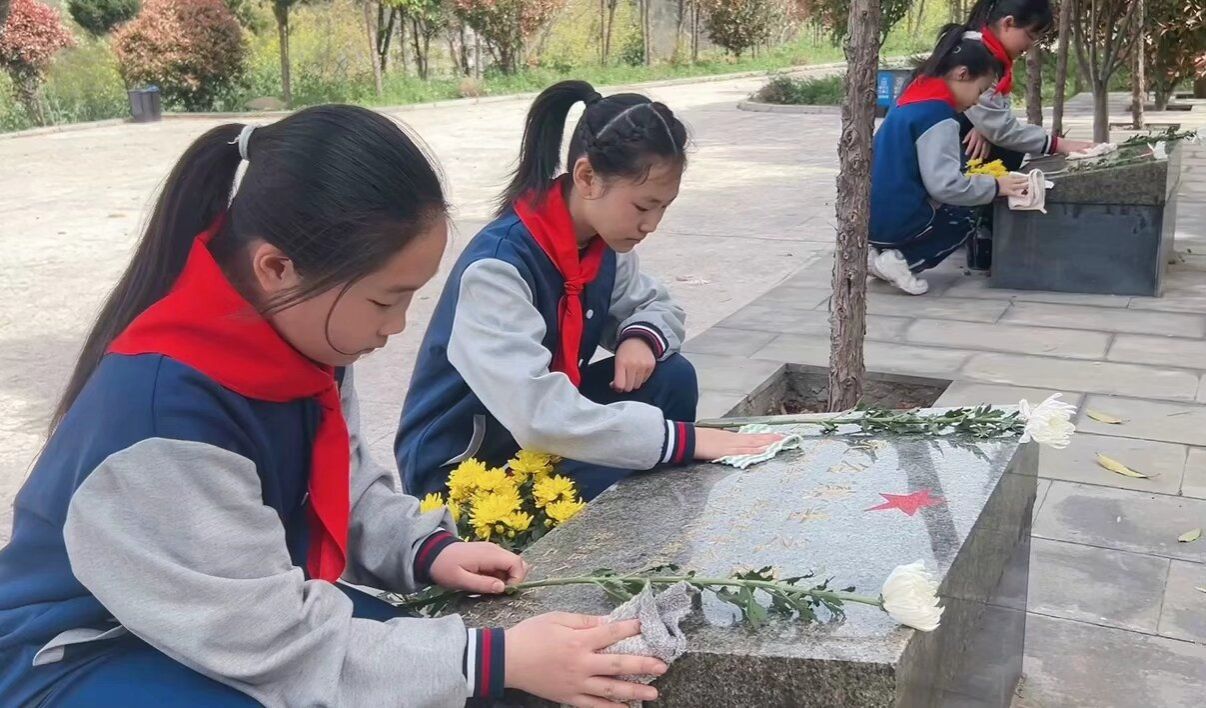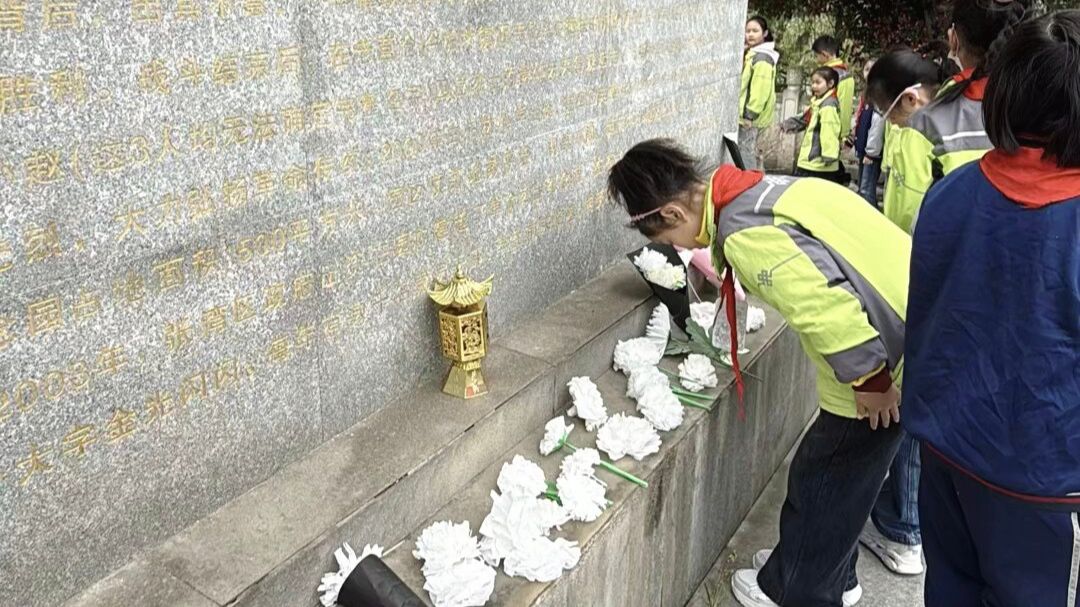活动现场庄严肃穆,全体师生整齐列队,向革命先烈默哀一分钟,深切追思英烈事迹,感念和平生活来之不易。默哀结束后,学生代表上台发言,以真挚情感表达对先烈的崇高敬意,倡议全体同学传承英烈精神,立志勤学、勇担使命。随后,师生们绕行烈士纪念碑,聆听革命先辈英勇故事,感悟先辈们为民族解放无私奉献、不畏牺牲的崇高精神,并细心清扫墓碑、敬献鲜花,以实际行动寄托哀思。活动最后,少先队员们面向队旗重温入队誓词,铿锵誓言彰显少年担当,齐声高唱的少先队队歌,在纪念园久久回荡。