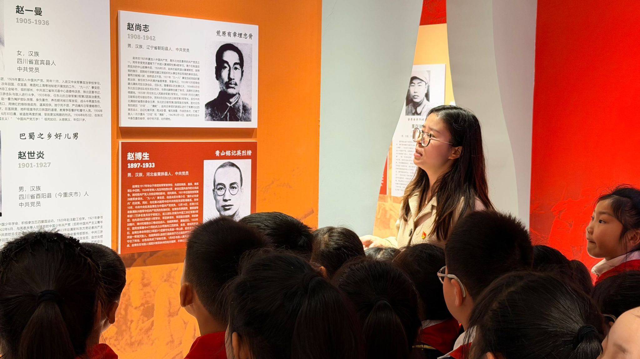 在红色纪念馆内,党员教师化身红色清廉宣讲员,结合革命先烈事迹,为同学们生动讲述先烈的清廉故事与奋斗历程,将清廉教育有机融入红色历史讲解,带来一堂沉浸式、走心式的清廉思政课,引导学生从小树立正确的世界观、人生观、价值观,扣好人生“第一粒清廉扣子”。