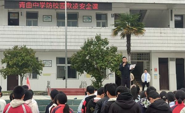 为进一步增强师生的安全意识,提升自我保护能力,营造安全、和谐的校园环境,4月2日,郧阳区青曲镇初级中学邀请当地派出所民警走进校园,开展了一场以“预防校园欺凌、防范溺水事故、警惕电信诈骗”为主题的校园安全教育讲座。此次活动得到了学校领导、师生及家长的高度重视和积极响应。