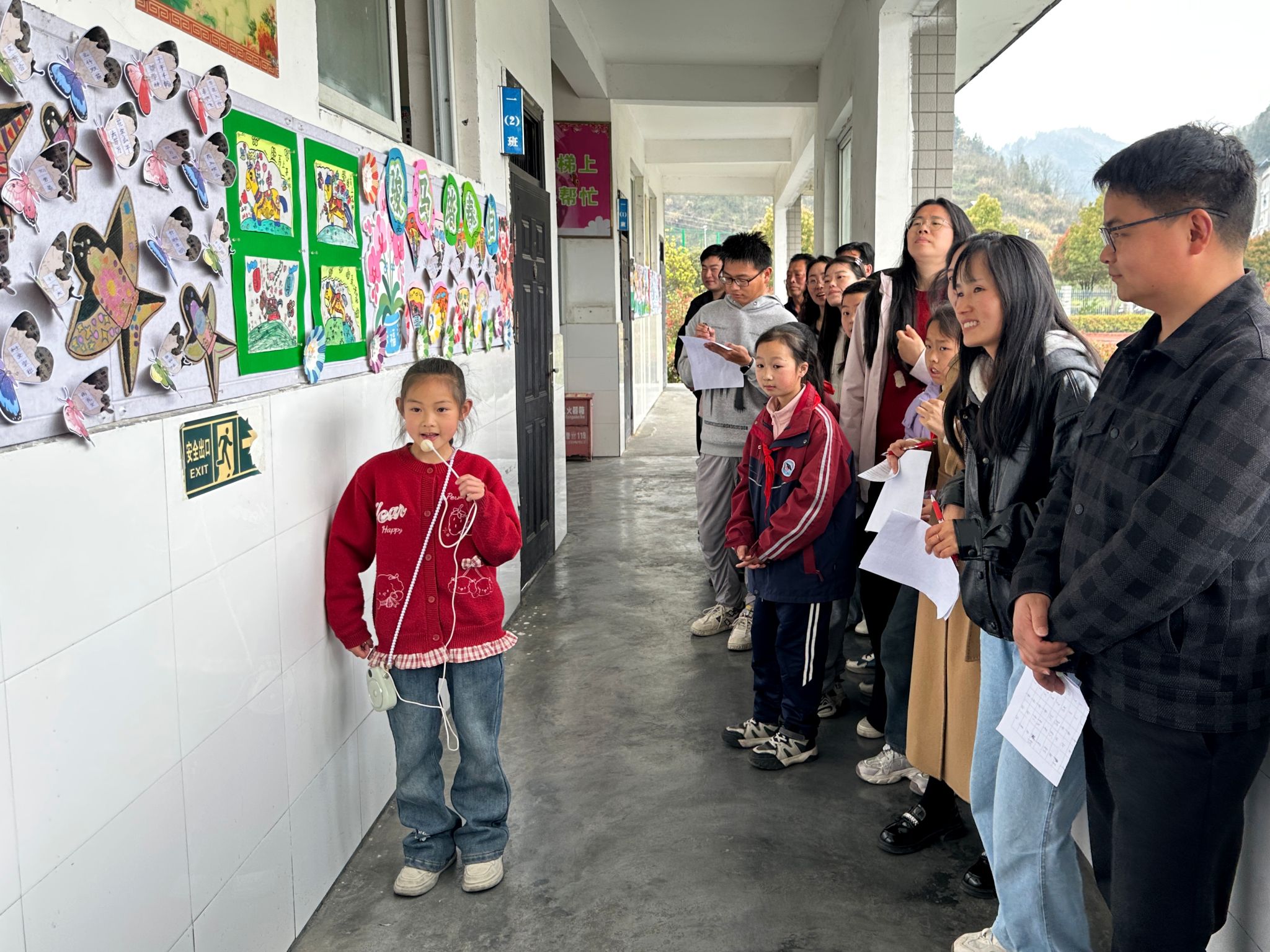 评比围绕主题鲜明性、内容丰富性、创意美观性三个核心维度展开。评委们逐班观摩,认真聆听小小解说员对文化墙设计理念、主题构思、中队文化的生动讲解,细致考量每一面墙的主题呈现、学生参与度、视觉效果,同时对解说员的表达能力、精神风貌、讲解逻辑进行综合评分,全程公平、公正、公开。