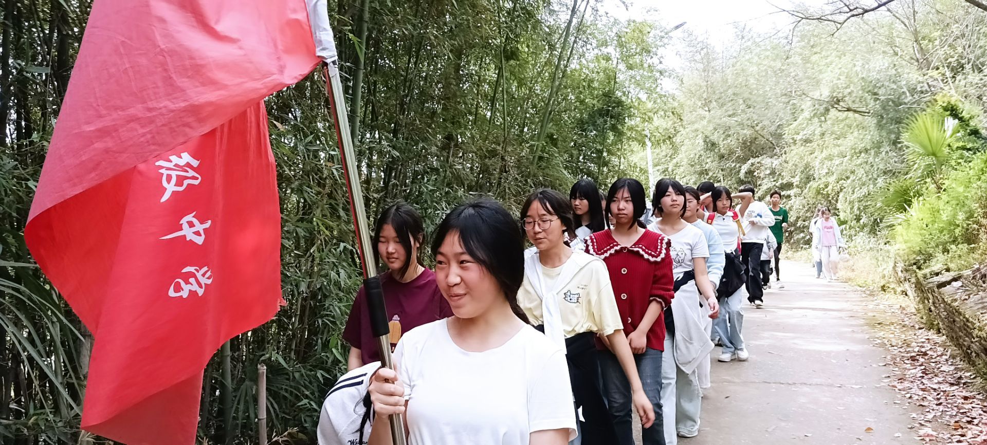 徒步路上,温暖与陪伴无处不在,师生情谊在春日里悄然升温。体力充沛的同学主动帮老师拎拿物品、分担负担;大家并肩同行,齐声唱响校园歌曲,欢快的歌声伴着春风飘向远方。