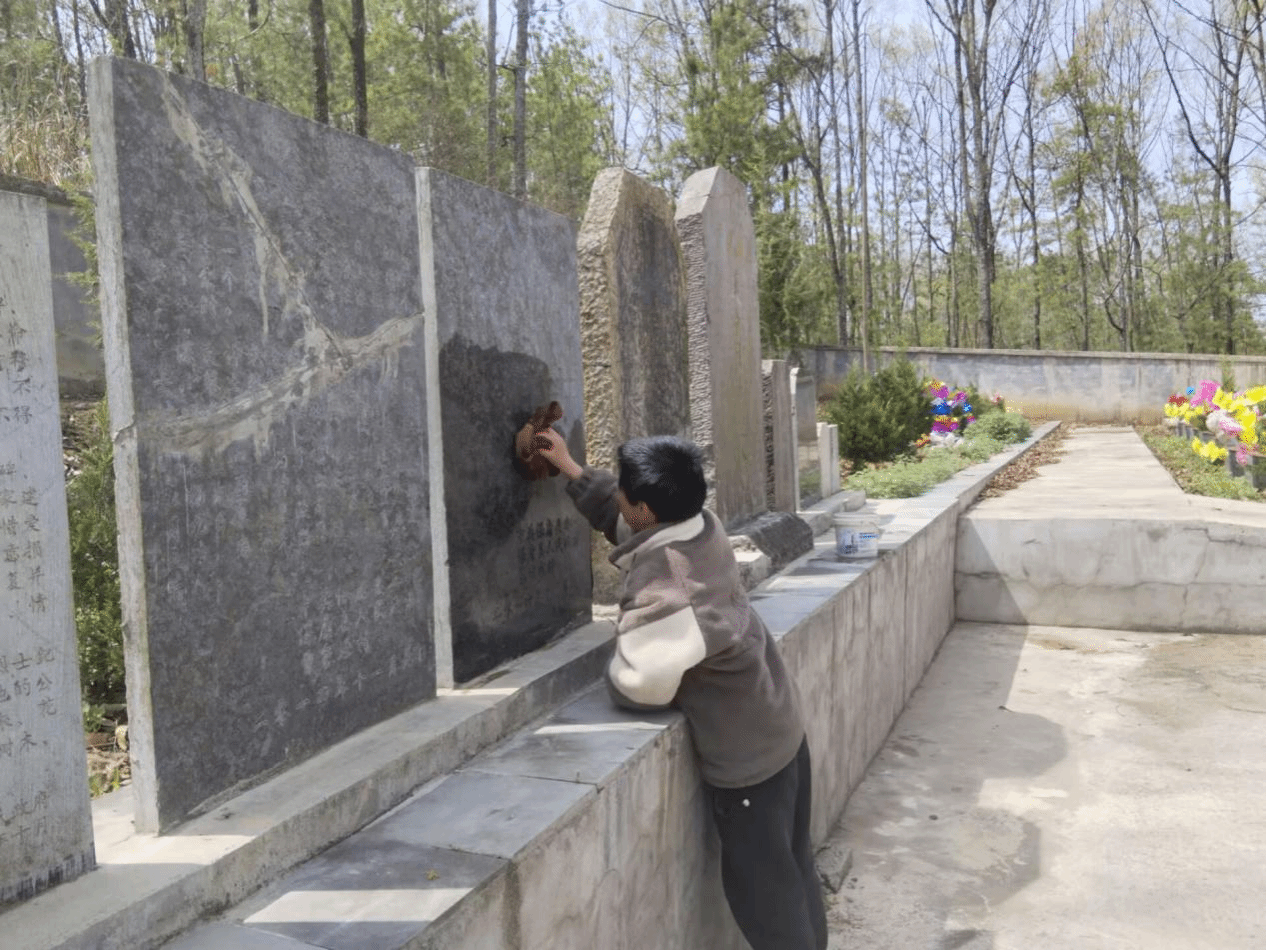 在实践活动环节,师生分工合作,低年级师生手持抹布、毛刷等工具,认真擦拭墓碑灰尘,高年级师生清理墓地周边杂物并向革命烈士敬献花圈与清明吊,以实际行动表达对革命先烈的崇敬与追思。