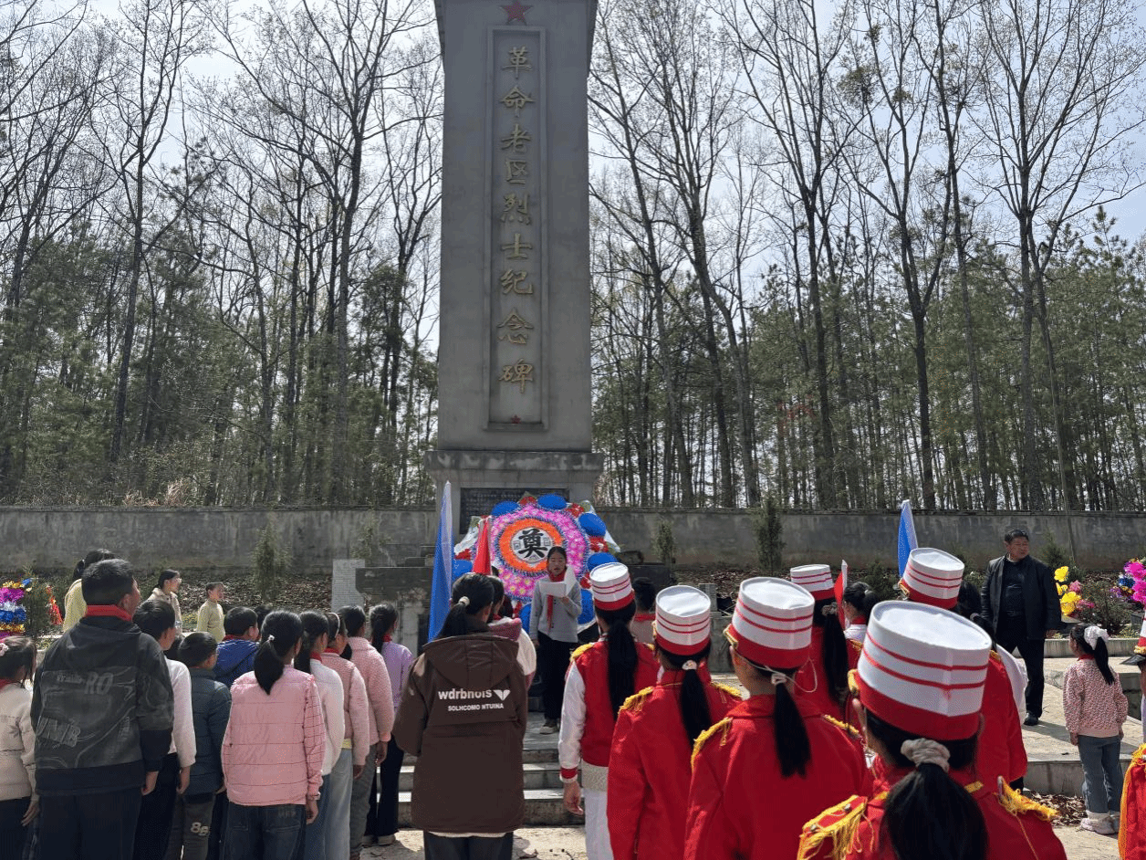 陵园里,全体师生齐唱了《中华人民共和国国歌》及《中国少年先锋队队歌》,聆听老党员韩治材深情讲述1931年5月红军战士在马良坪英勇战斗的事迹。