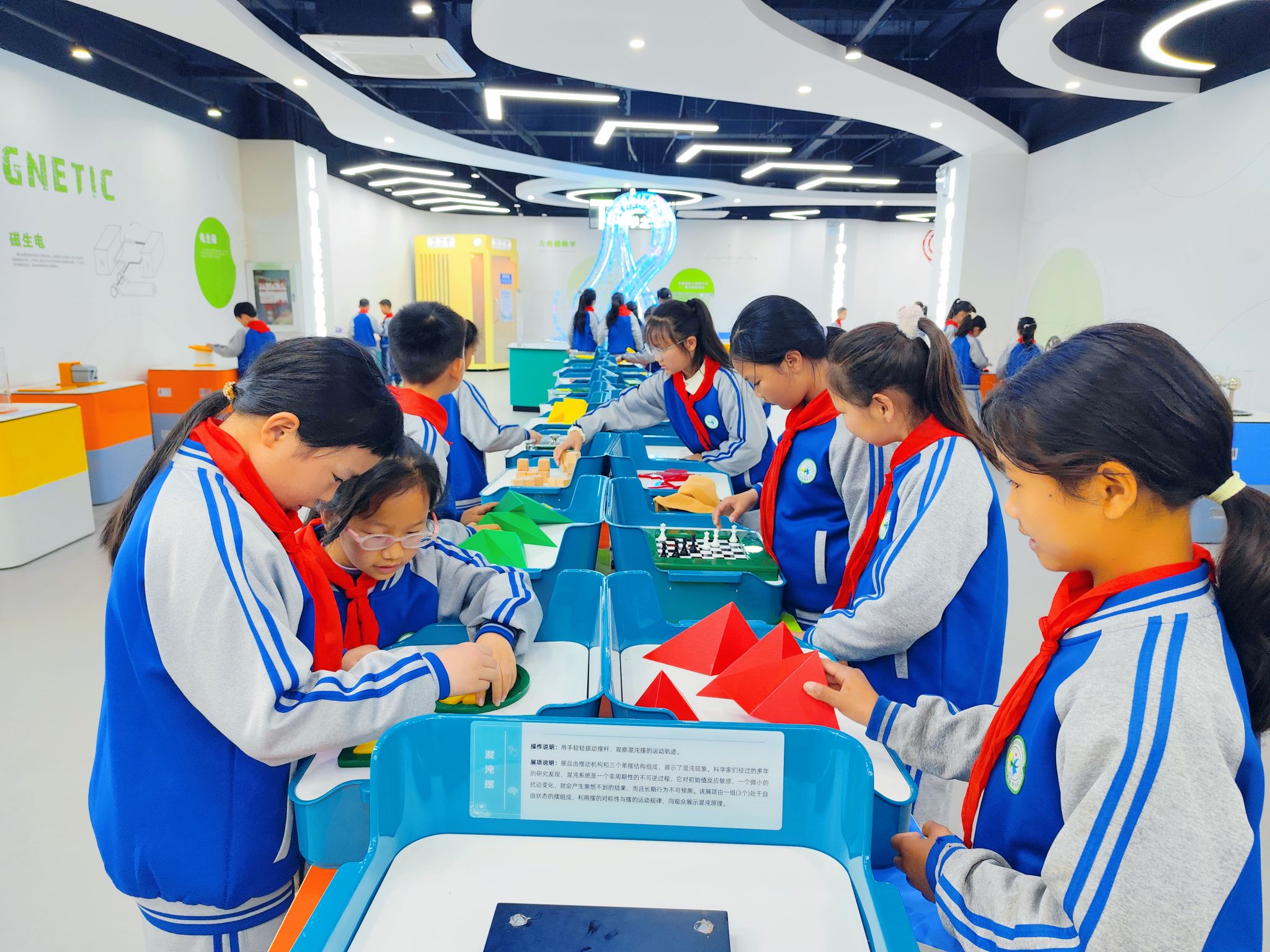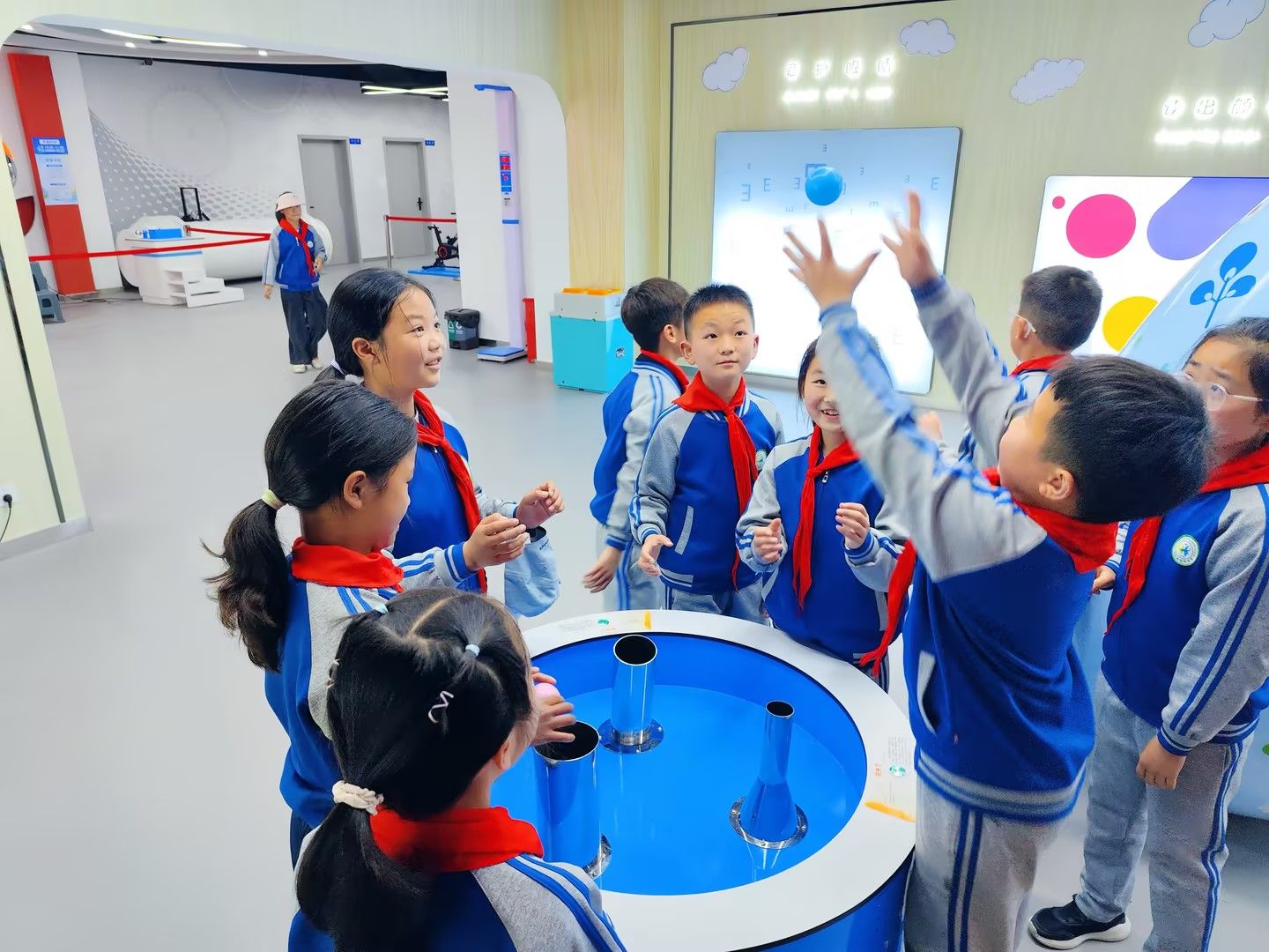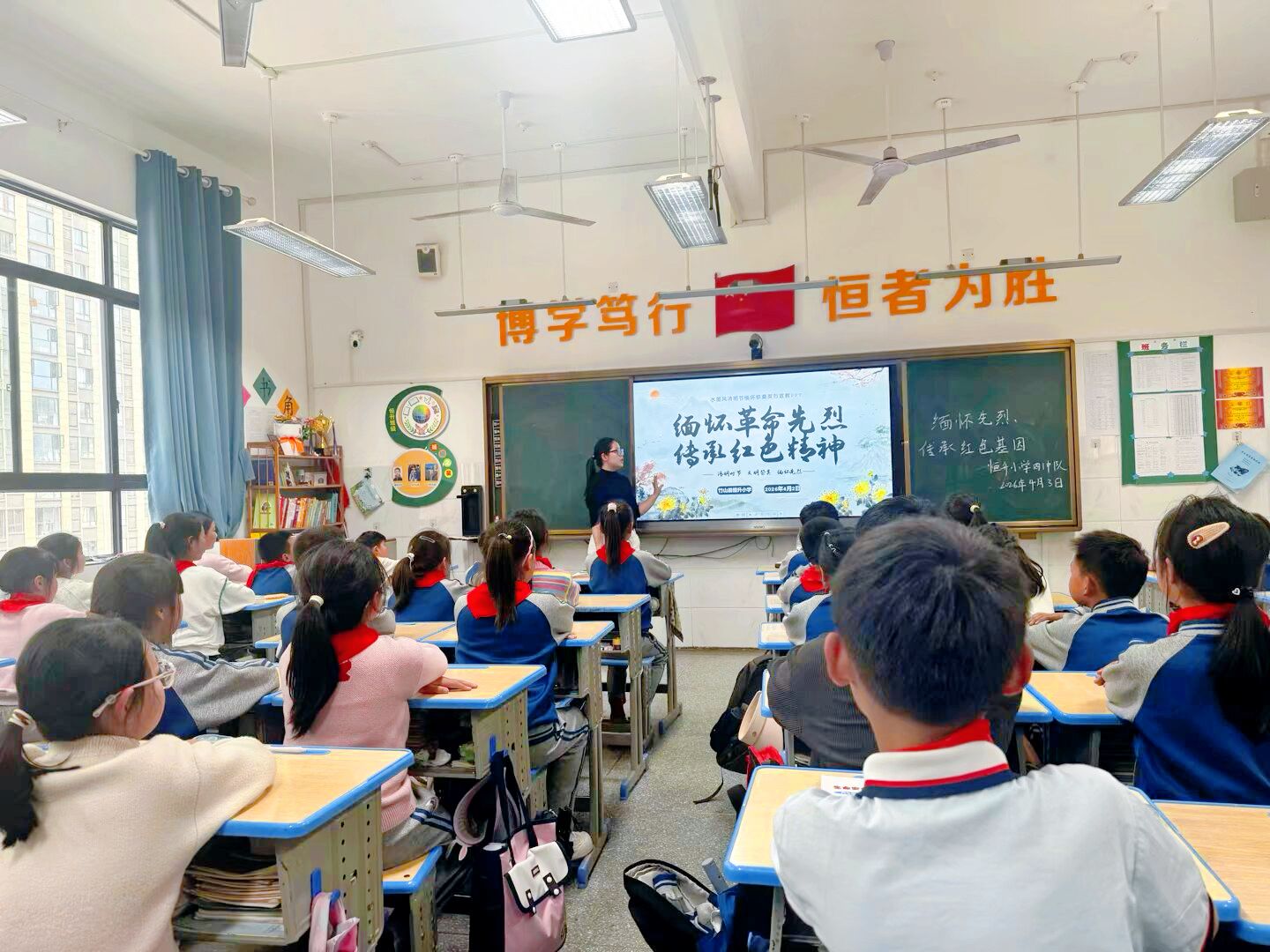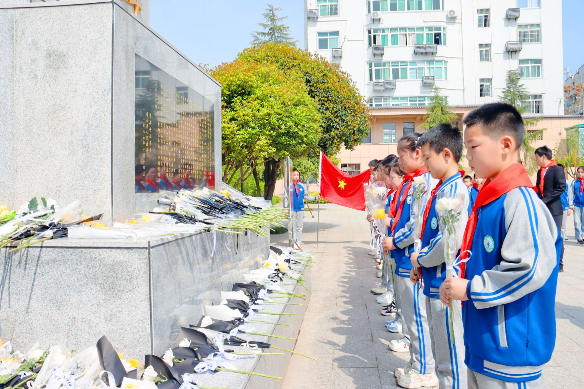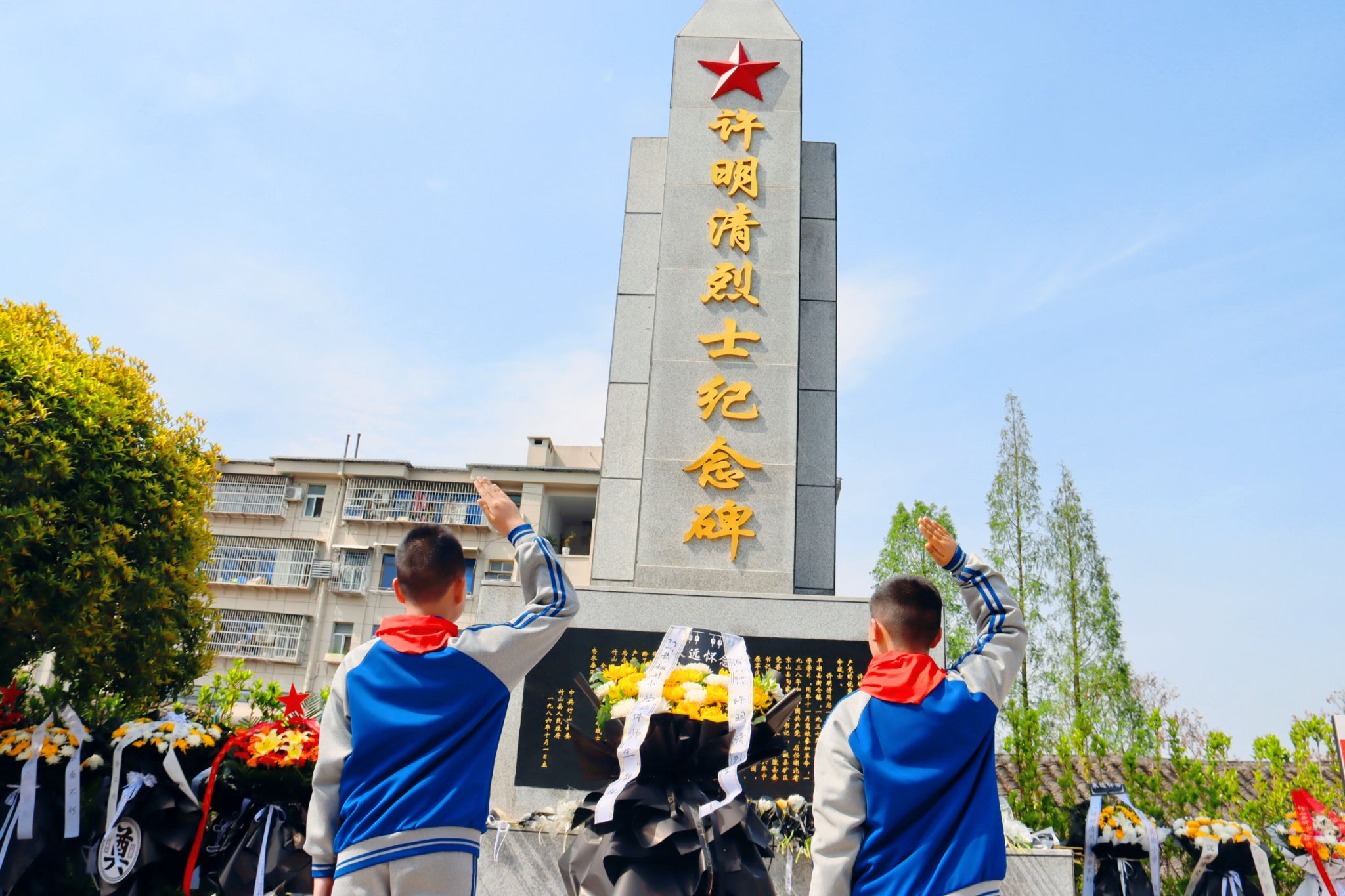 校园外,精心设置“穿越时空的对话”实践环节,让红色教育走出校园、走进实景。五年级学生在巍峨矗立的许明清烈士纪念碑前整齐列队。伴随着低沉悠扬的哀乐,全体师生肃立默哀,依次向先烈敬献花篮和鲜花、敬队礼,深切缅怀革命先烈为民族独立、人民解放抛头颅、洒热血的不朽功勋。在鲜红的队旗引领下,师生们庄严重温入队誓词,铿锵有力的誓言回荡在陵园上空,彰显出新时代师生传承英烈精神、勇担时代使命的坚定决心。与此同时,四年级师生同步走进县博物馆和县科技馆,通过参观历史文物、聆听革命故事,直观了解革命先辈的艰苦奋斗历程,切身感受祖国的发展与进步,进一步传承爱国主义精神和中华民族优良传统。