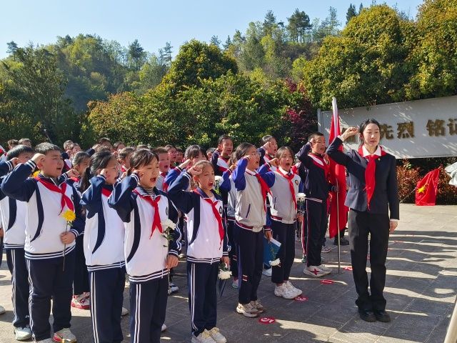 “我是中国少年先锋队队员,我在队旗下宣誓……”区实验学校大队辅导员唐嘉林带领全体少先队员高举右拳,重温入队誓词,“准备着,为共产主义事业而奋斗!”“时刻准备着!”呼号声铿锵有力、响彻云霄。仪式最后,师生们依次敬献鲜花,绕行瞻仰纪念碑,以朴素仪式传承先烈遗志。