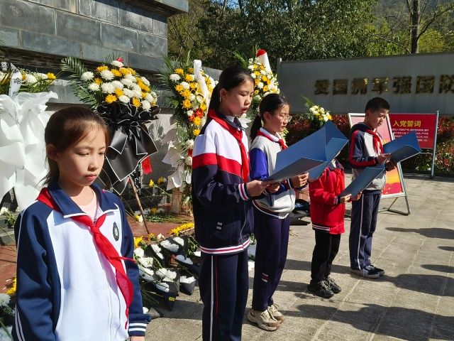 春阳和煦,松柏凝翠。4月1日下午,市实验小学、市五堰小学、区实验学校、火车站小学、大川学校、茅塔乡中心小学六校联合举办“缅怀革命先烈 传承红色基因 争做时代新人”清明祭英烈主题实践活动。在各校主要负责人带领下,教联体80余名队员、团员、党员代表齐聚东沟爱国主义教育基地,以爱心公益浸润红色教育,在行走课堂中赓续精神血脉,生动践行教联体“共建、共享、共育”育人理念。